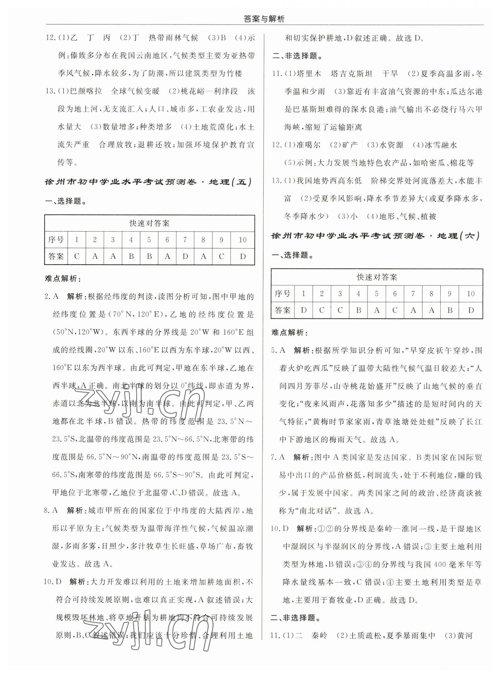 注:目前有些书本章节名称可能整理的还不是很完善,但都是按照顺序排列的,请同学们按照顺序仔细查找。练习册 2023年徐州市初中学业水平考试预测卷地理 答案主要是用来给同学们做完题方便对答案用的,请勿直接抄袭。