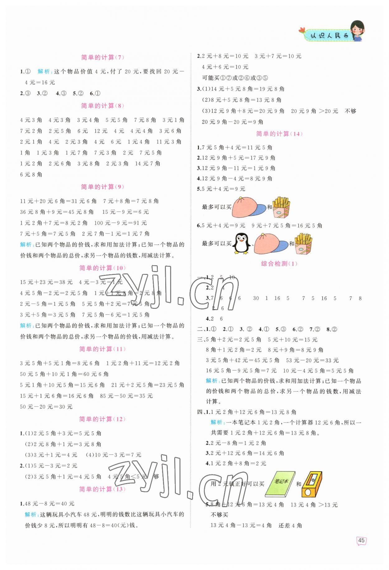 注:目前有些书本章节名称可能整理的还不是很完善,但都是按照顺序排列的,请同学们按照顺序仔细查找。练习册 2023年认识人民币一年级数学下册人教版 答案主要是用来给同学们做完题方便对答案用的,请勿直接抄袭。