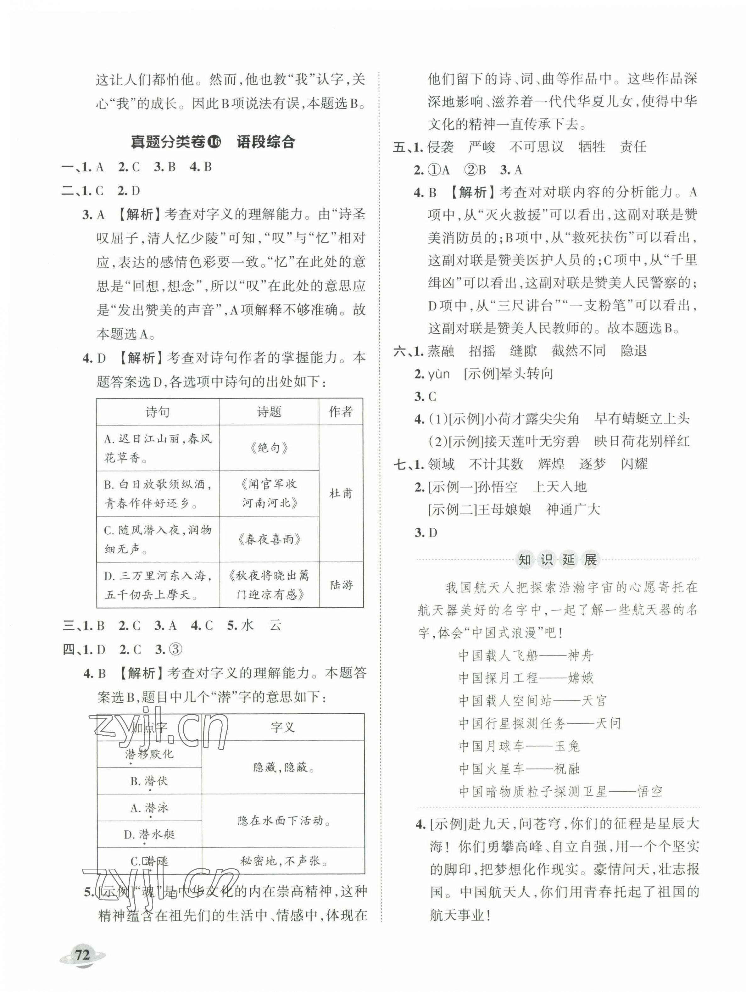 注:目前有些书本章节名称可能整理的还不是很完善,但都是按照顺序排列的,请同学们按照顺序仔细查找。练习册 2023年小升初重点校各地真题精编卷语文 答案主要是用来给同学们做完题方便对答案用的,请勿直接抄袭。