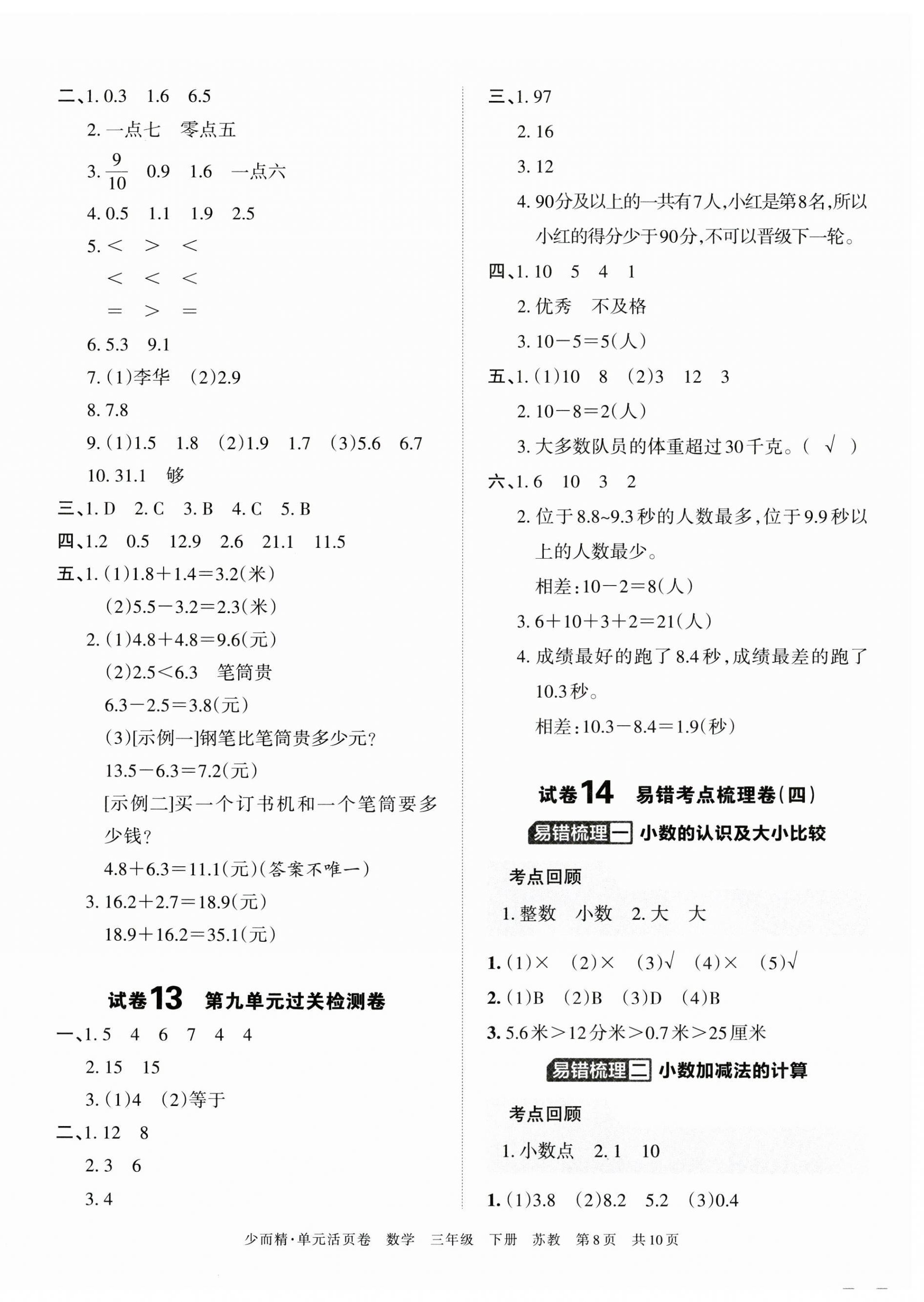 注:目前有些书本章节名称可能整理的还不是很完善,但都是按照顺序排列的,请同学们按照顺序仔细查找。练习册 2023年王朝霞单元活页卷三年级数学下册苏教版 答案主要是用来给同学们做完题方便对答案用的,请勿直接抄袭。