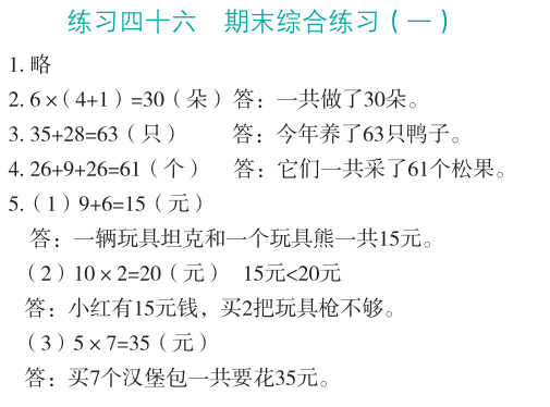 注:目前有些书本章节名称可能整理的还不是很完善,但都是按照顺序排列的,请同学们按照顺序仔细查找。练习册 2023年应用题思维强化训练二年级数学全一册人教版 答案主要是用来给同学们做完题方便对答案用的,请勿直接抄袭。