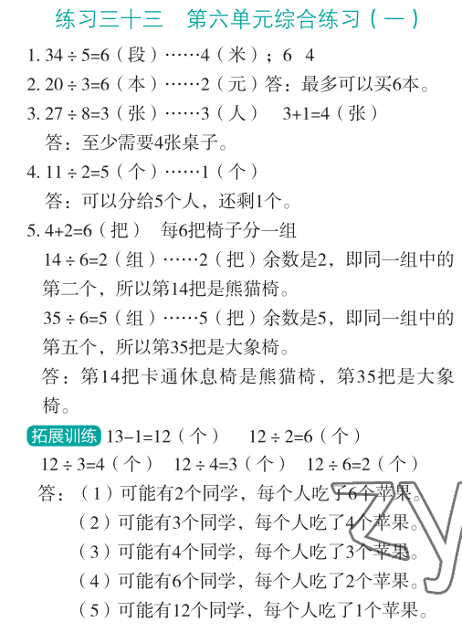 注:目前有些书本章节名称可能整理的还不是很完善,但都是按照顺序排列的,请同学们按照顺序仔细查找。练习册 2023年应用题思维强化训练二年级数学全一册人教版 答案主要是用来给同学们做完题方便对答案用的,请勿直接抄袭。