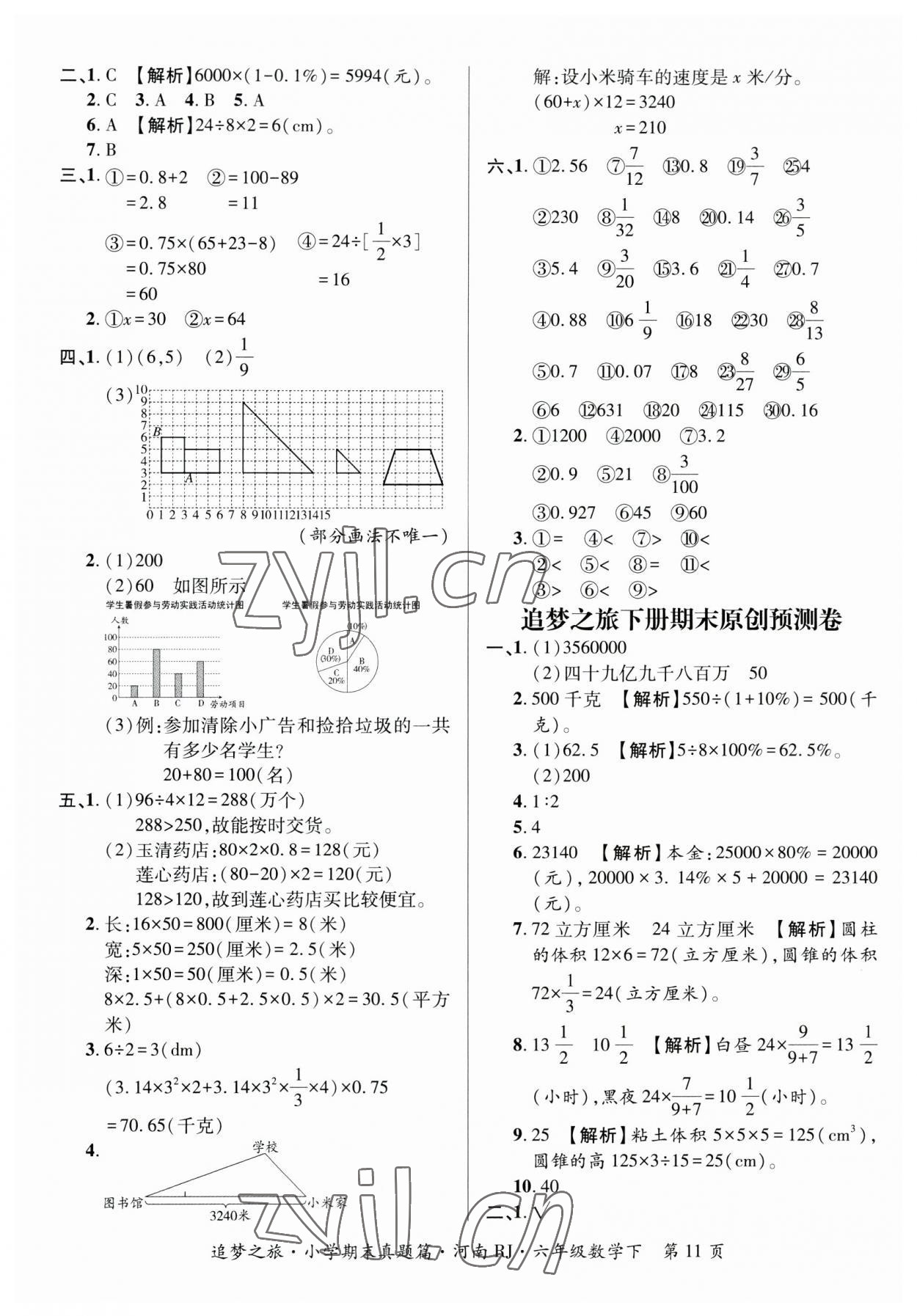 注:目前有些书本章节名称可能整理的还不是很完善,但都是按照顺序排列的,请同学们按照顺序仔细查找。练习册 2023年追梦之旅小学期末真题篇六年级数学下册人教版河南专版 答案主要是用来给同学们做完题方便对答案用的,请勿直接抄袭。