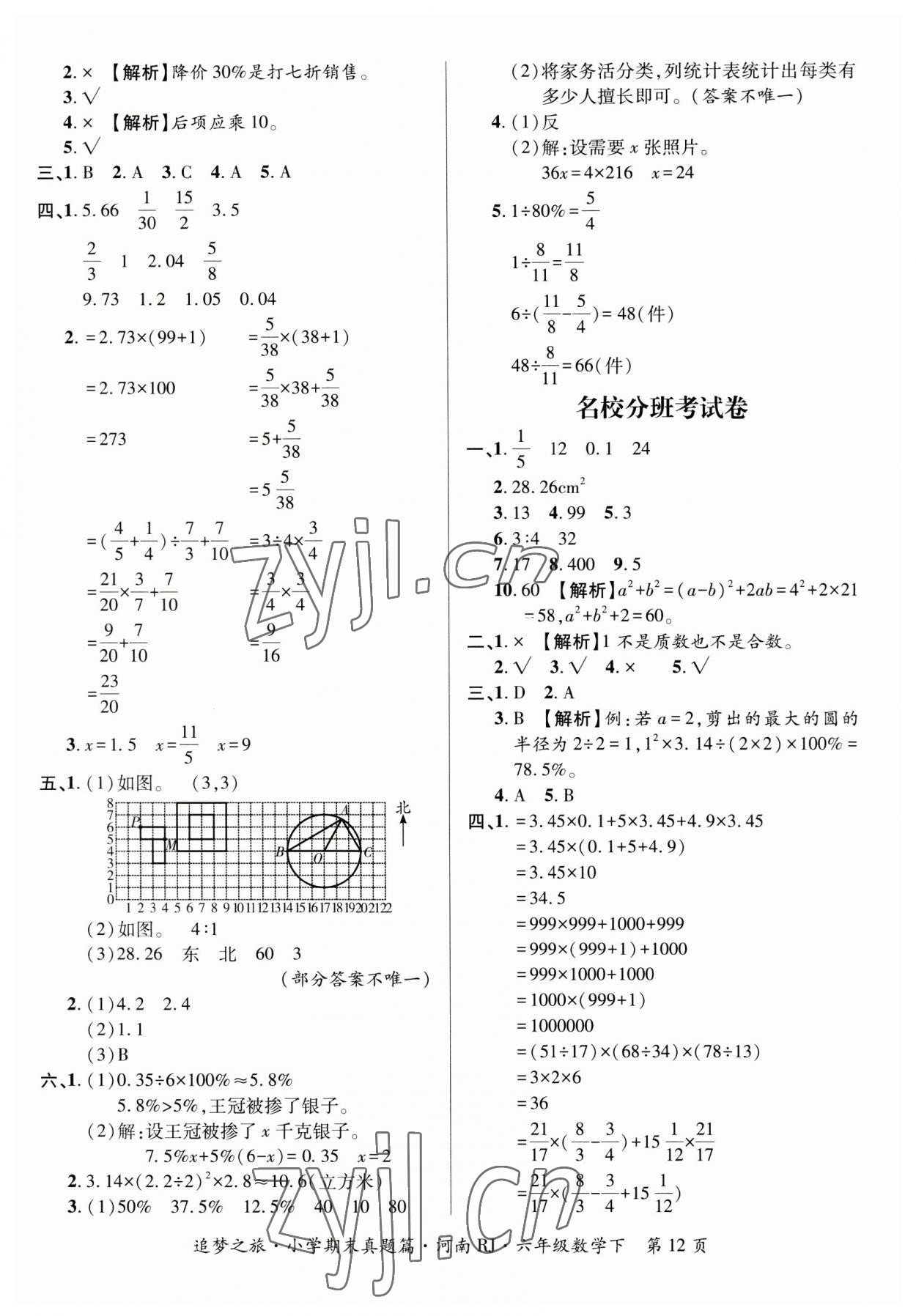 注:目前有些书本章节名称可能整理的还不是很完善,但都是按照顺序排列的,请同学们按照顺序仔细查找。练习册 2023年追梦之旅小学期末真题篇六年级数学下册人教版河南专版 答案主要是用来给同学们做完题方便对答案用的,请勿直接抄袭。