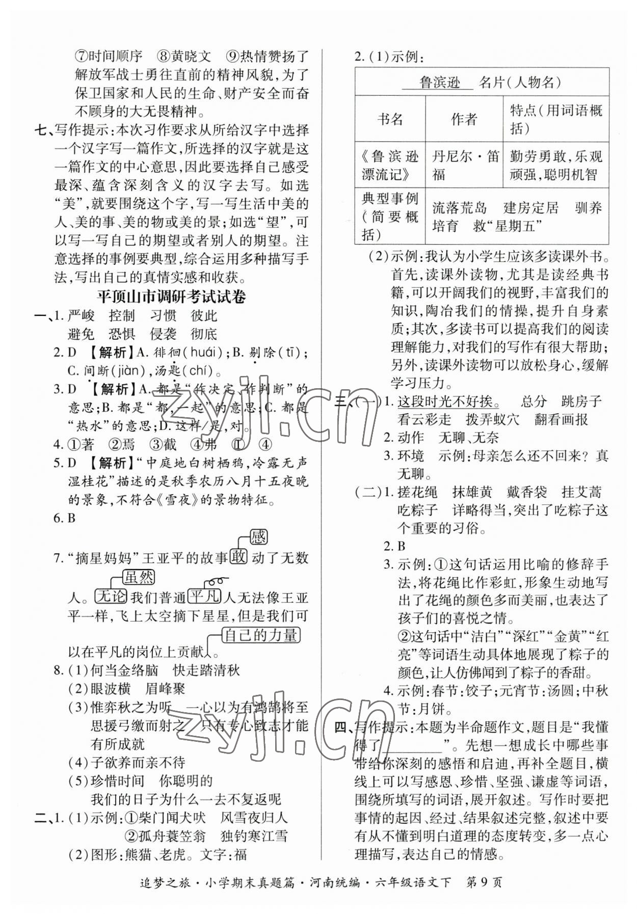 2023年追梦之旅小学期末真题篇六年级语文下册人教版河南专版