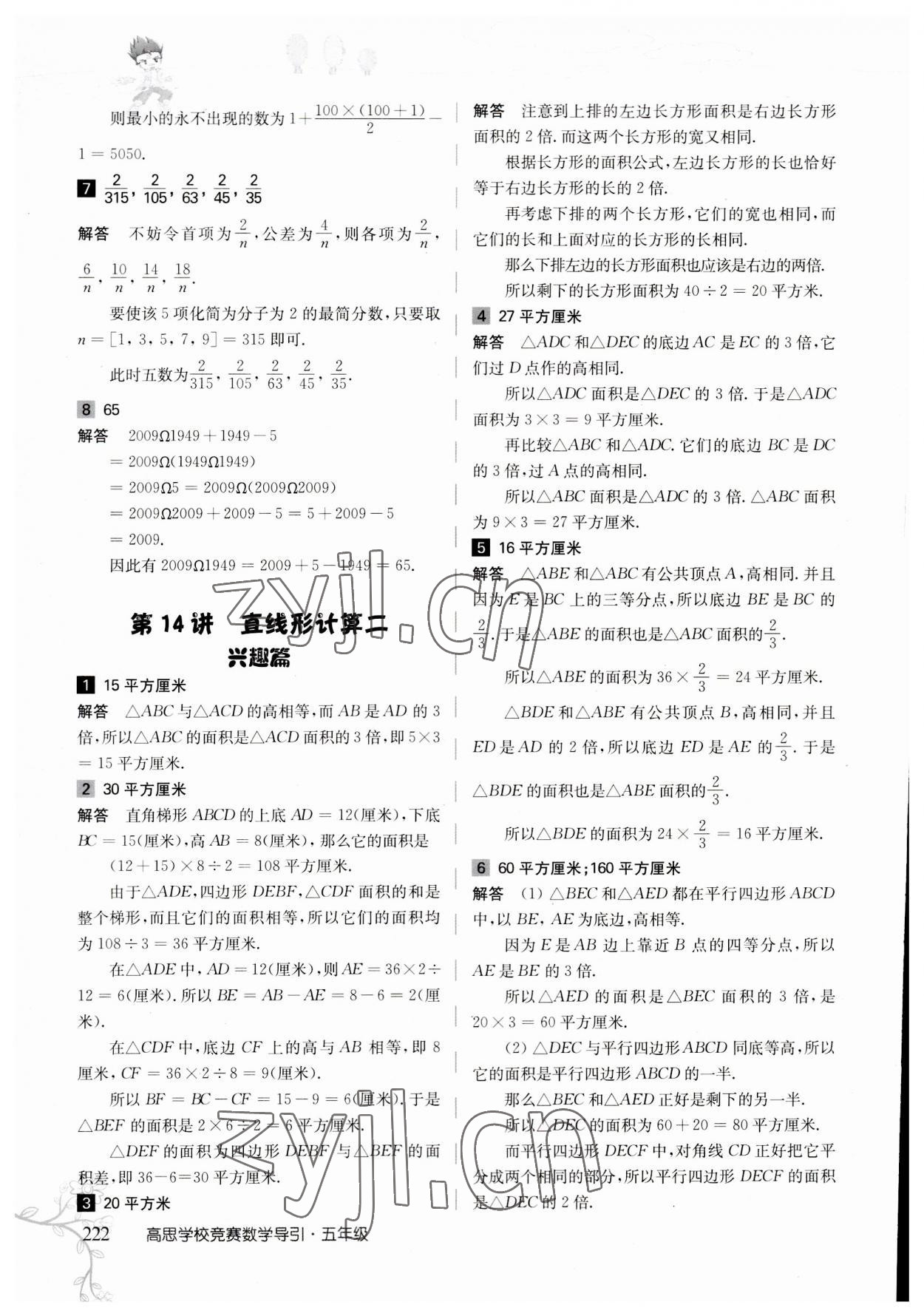注:目前有些书本章节名称可能整理的还不是很完善,但都是按照顺序排列的,请同学们按照顺序仔细查找。练习册 2023年高思学校竞赛数学导引五年级 答案主要是用来给同学们做完题方便对答案用的,请勿直接抄袭。