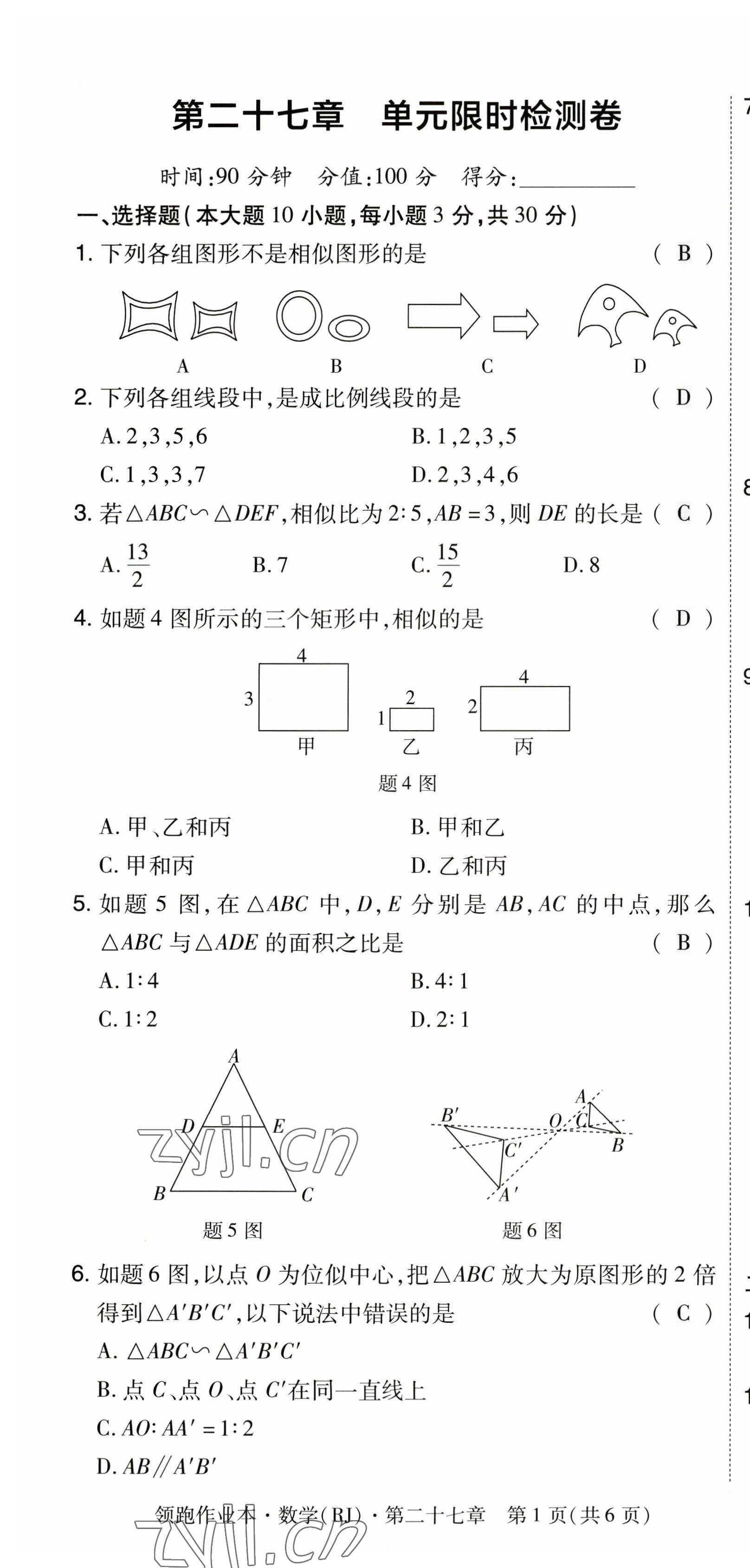 2023年领跑作业本九年级数学全一册人教版