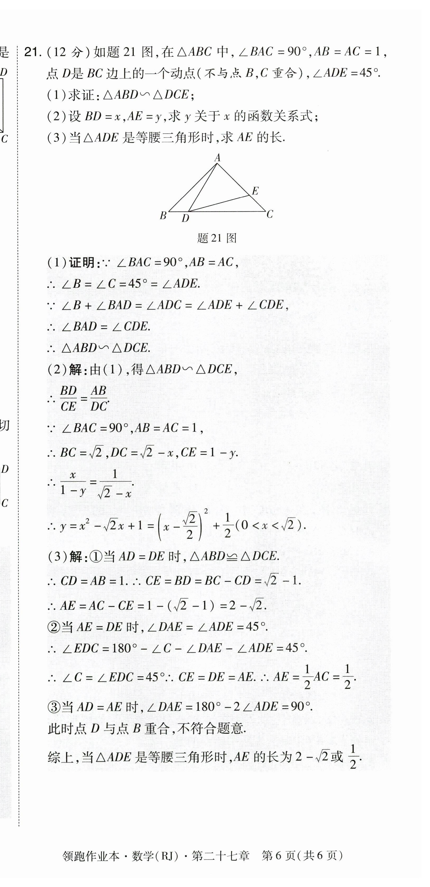 注:目前有些书本章节名称可能整理的还不是很完善,但都是按照顺序排列的,请同学们按照顺序仔细查找。练习册 2023年领跑作业本九年级数学全一册人教版 答案主要是用来给同学们做完题方便对答案用的,请勿直接抄袭。