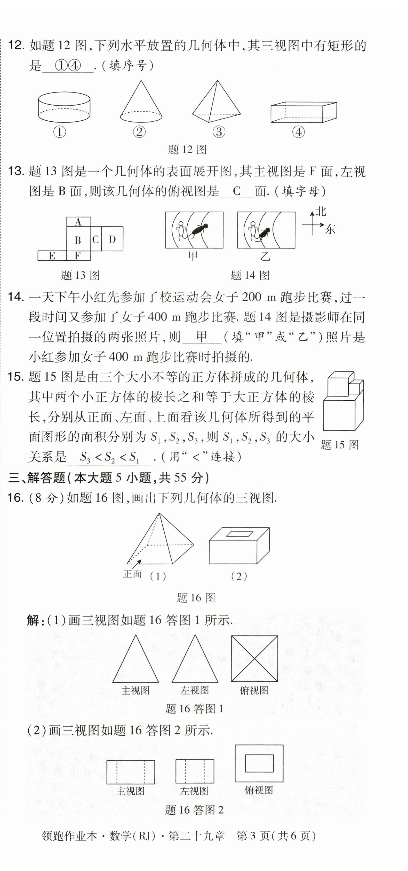 注:目前有些书本章节名称可能整理的还不是很完善,但都是按照顺序排列的,请同学们按照顺序仔细查找。练习册 2023年领跑作业本九年级数学全一册人教版 答案主要是用来给同学们做完题方便对答案用的,请勿直接抄袭。