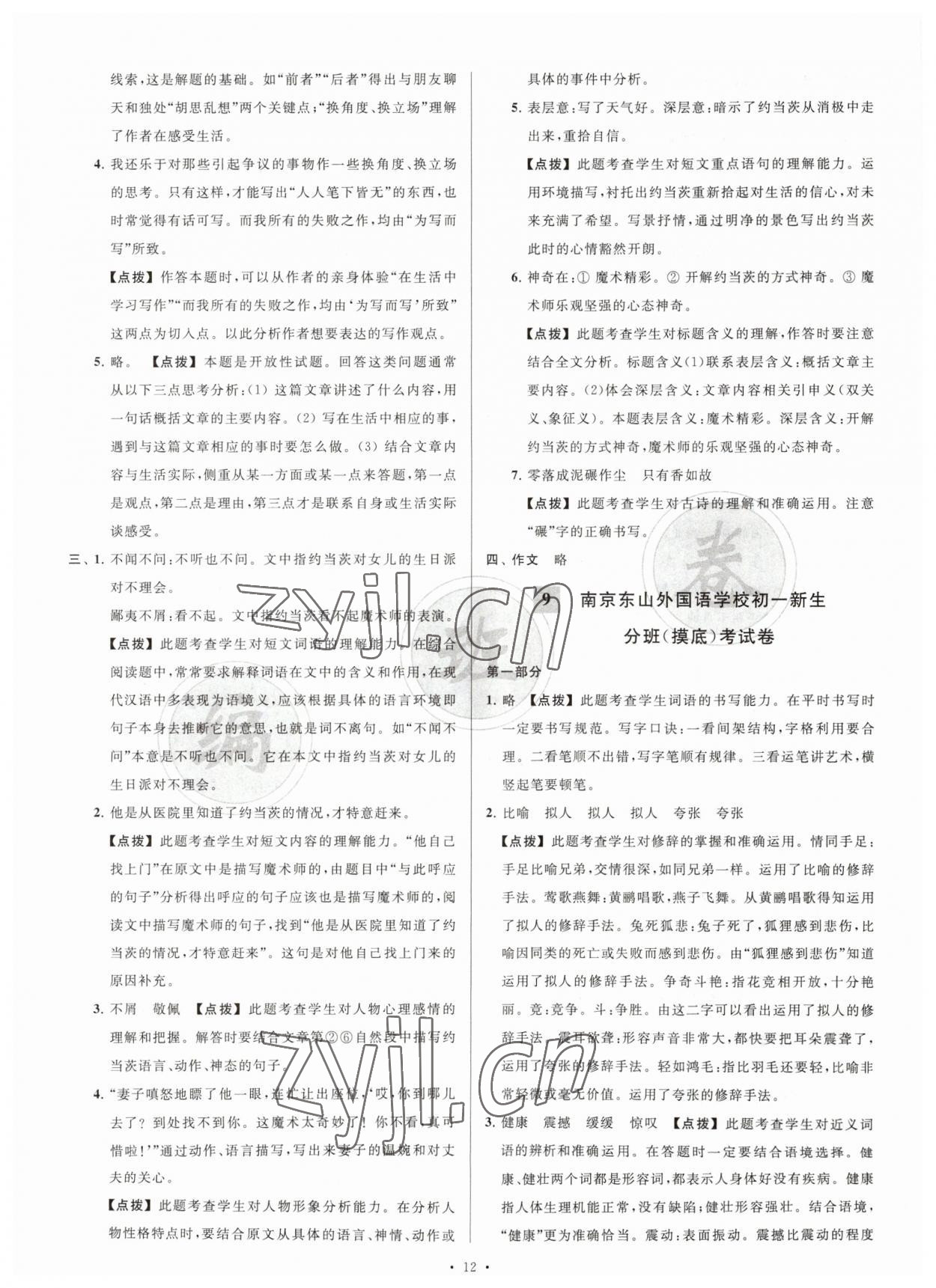 2023年江苏省新初一均衡编班真题试卷七年级语文