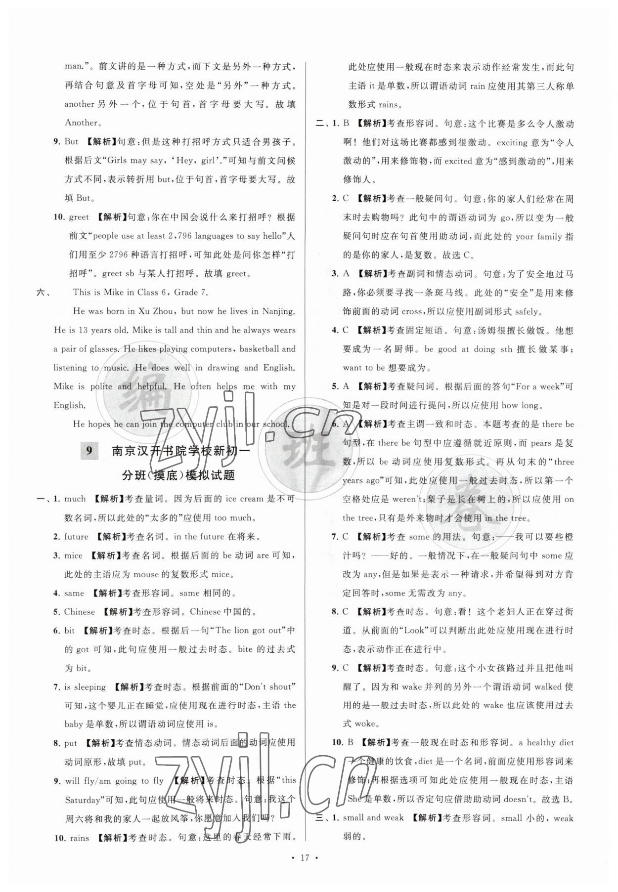 注:目前有些书本章节名称可能整理的还不是很完善,但都是按照顺序排列的,请同学们按照顺序仔细查找。练习册 2023年江苏省新初一均衡编班真题试卷七年级英语译林版 答案主要是用来给同学们做完题方便对答案用的,请勿直接抄袭。