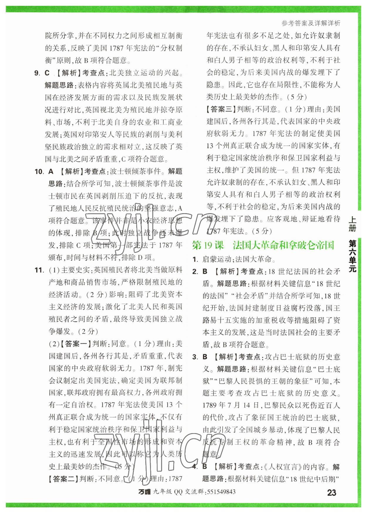 注:目前有些书本章节名称可能整理的还不是很完善,但都是按照顺序排列的,请同学们按照顺序仔细查找。练习册 2023年万唯中考基础题九年级历史全一册人教版 答案主要是用来给同学们做完题方便对答案用的,请勿直接抄袭。