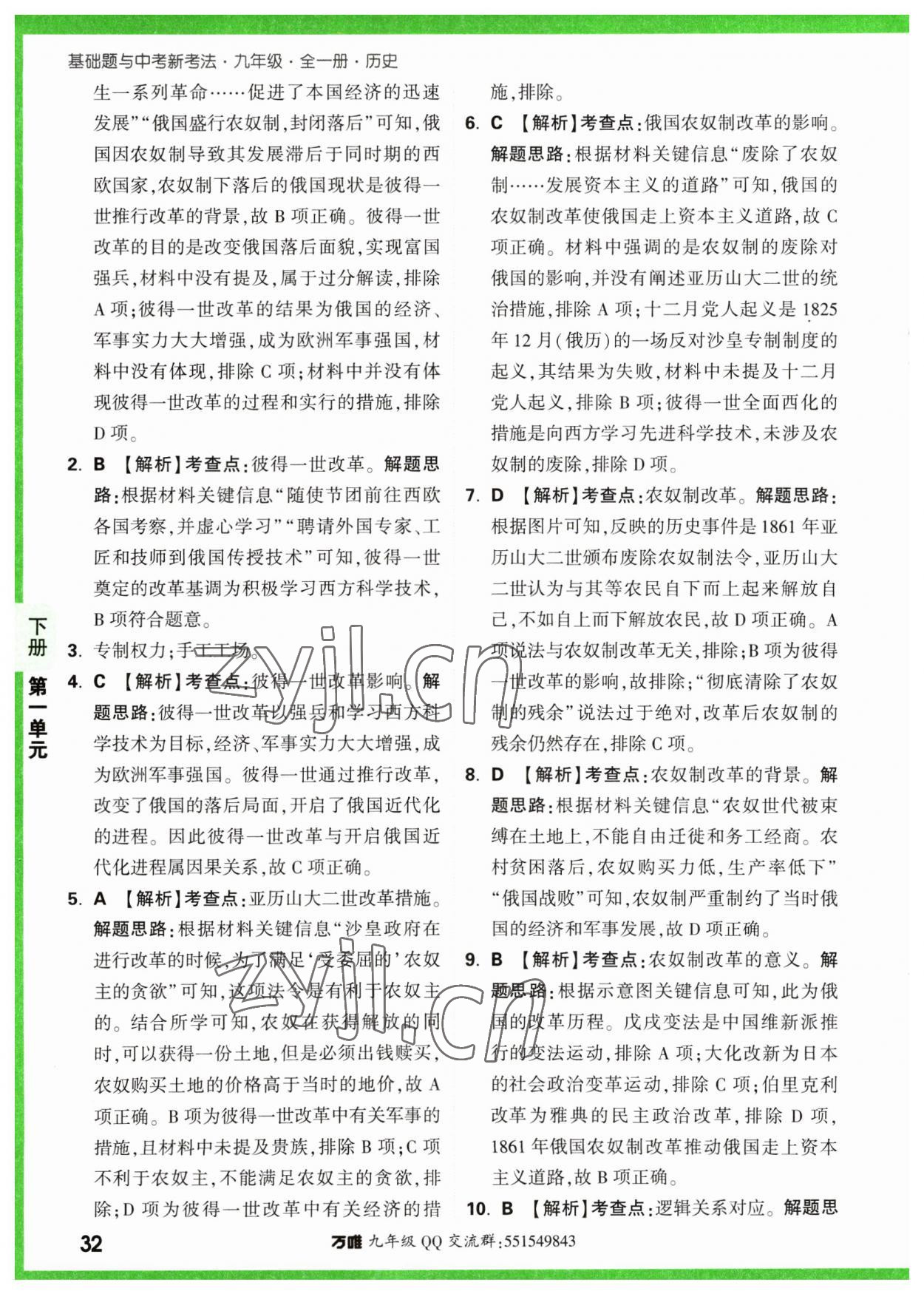 注:目前有些书本章节名称可能整理的还不是很完善,但都是按照顺序排列的,请同学们按照顺序仔细查找。练习册 2023年万唯中考基础题九年级历史全一册人教版 答案主要是用来给同学们做完题方便对答案用的,请勿直接抄袭。
