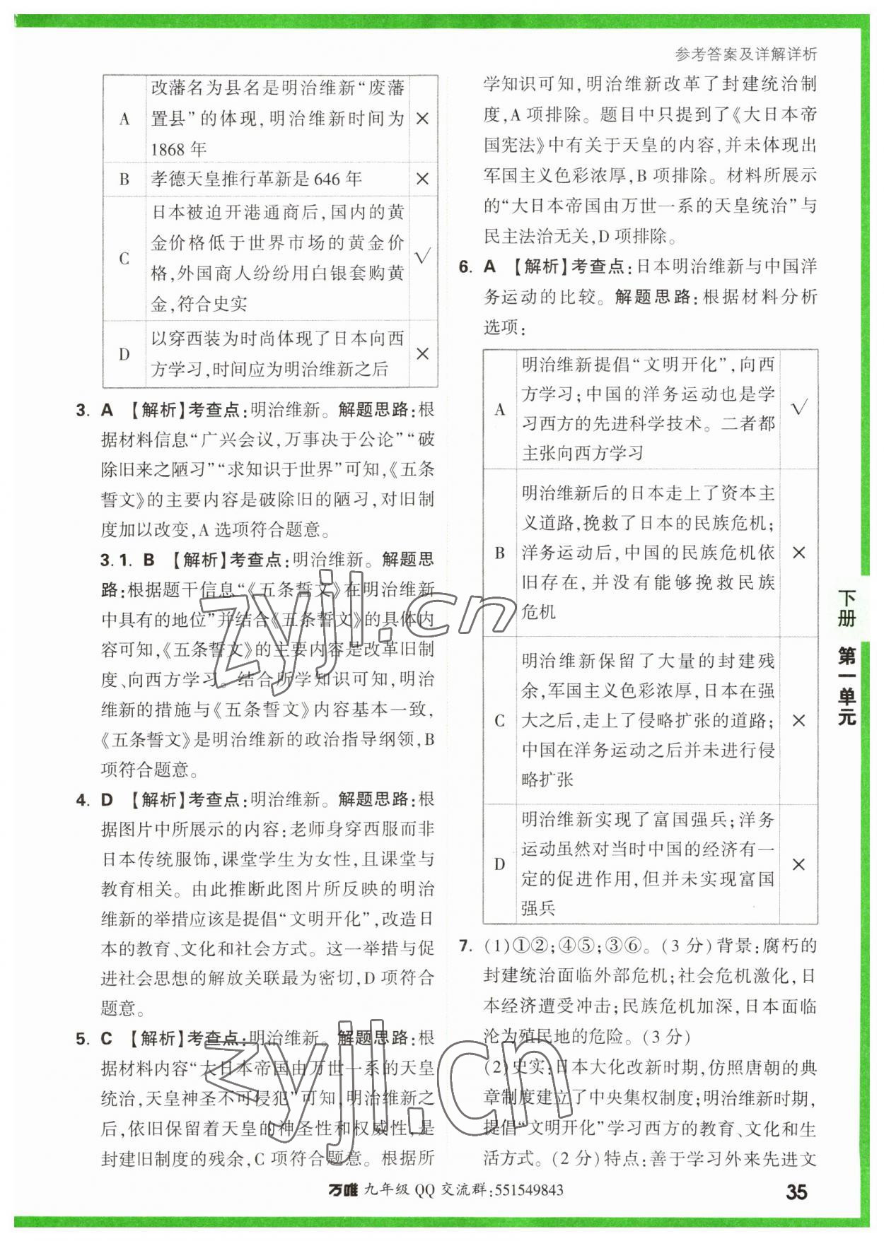 注:目前有些书本章节名称可能整理的还不是很完善,但都是按照顺序排列的,请同学们按照顺序仔细查找。练习册 2023年万唯中考基础题九年级历史全一册人教版 答案主要是用来给同学们做完题方便对答案用的,请勿直接抄袭。