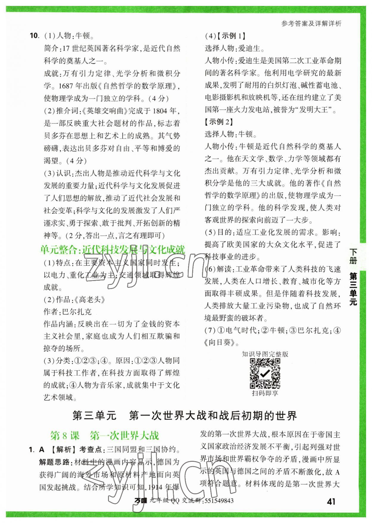 注:目前有些书本章节名称可能整理的还不是很完善,但都是按照顺序排列的,请同学们按照顺序仔细查找。练习册 2023年万唯中考基础题九年级历史全一册人教版 答案主要是用来给同学们做完题方便对答案用的,请勿直接抄袭。