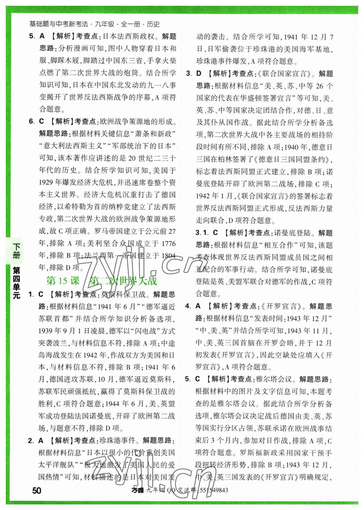 注:目前有些书本章节名称可能整理的还不是很完善,但都是按照顺序排列的,请同学们按照顺序仔细查找。练习册 2023年万唯中考基础题九年级历史全一册人教版 答案主要是用来给同学们做完题方便对答案用的,请勿直接抄袭。