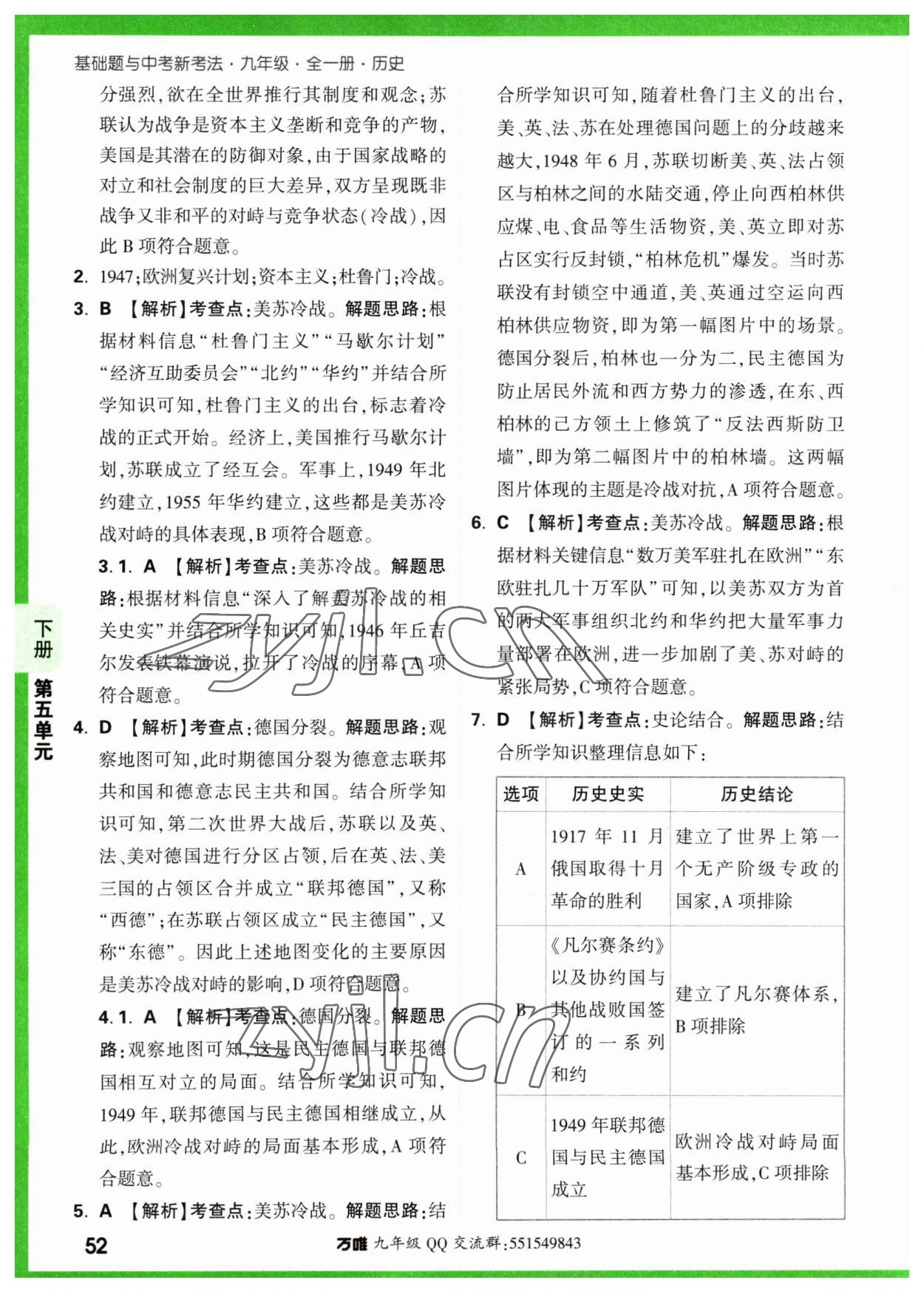 注:目前有些书本章节名称可能整理的还不是很完善,但都是按照顺序排列的,请同学们按照顺序仔细查找。练习册 2023年万唯中考基础题九年级历史全一册人教版 答案主要是用来给同学们做完题方便对答案用的,请勿直接抄袭。