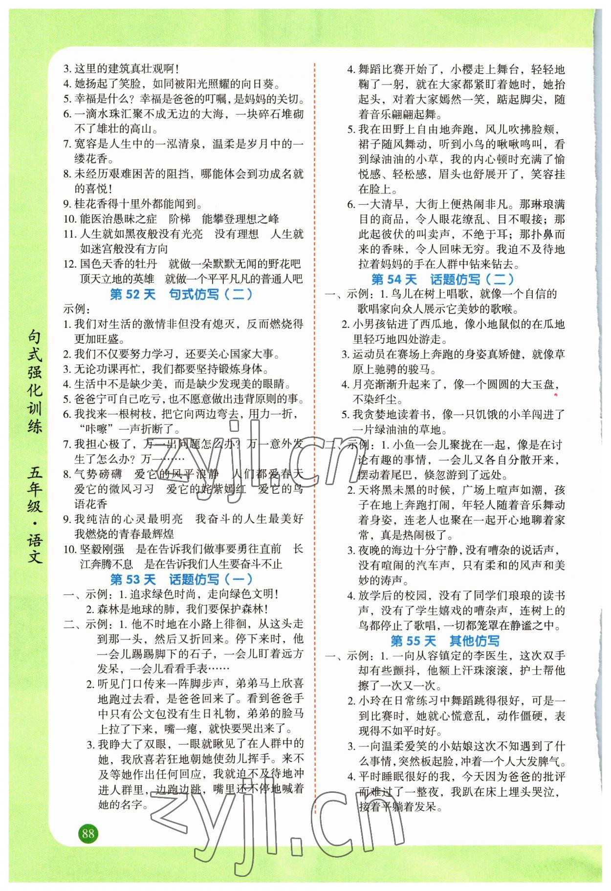 注:目前有些书本章节名称可能整理的还不是很完善,但都是按照顺序排列的,请同学们按照顺序仔细查找。练习册 2023年句式强化训练五年级语文人教版 答案主要是用来给同学们做完题方便对答案用的,请勿直接抄袭。
