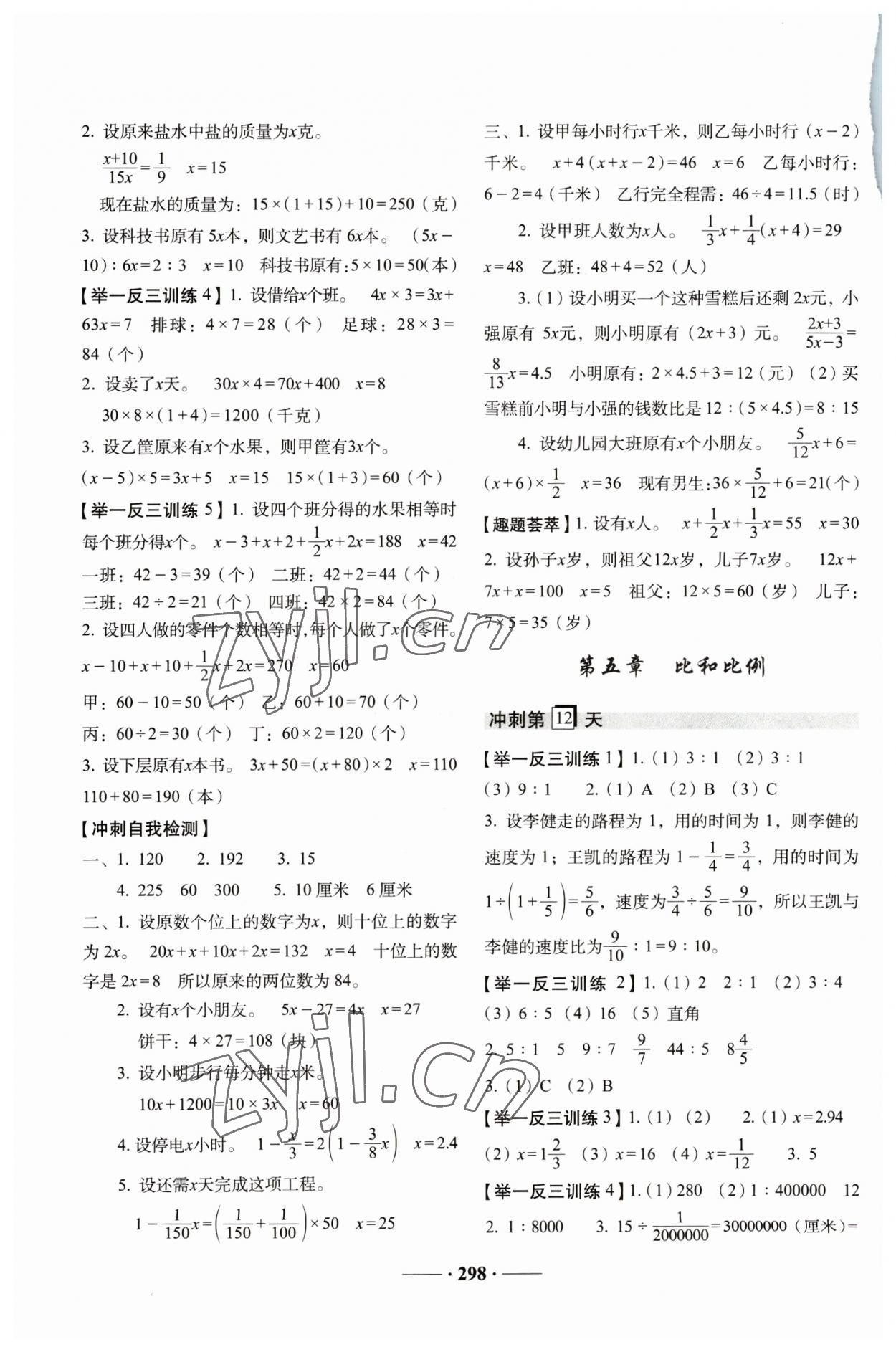 注:目前有些书本章节名称可能整理的还不是很完善,但都是按照顺序排列的,请同学们按照顺序仔细查找。练习册 2023年小考准备考前冲刺46天六年级数学 答案主要是用来给同学们做完题方便对答案用的,请勿直接抄袭。