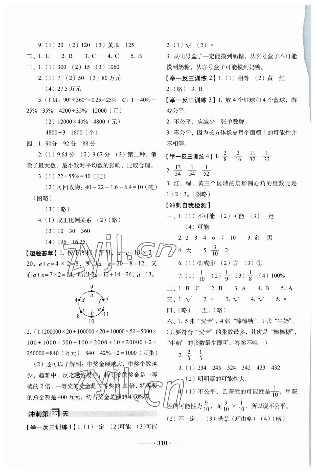 注:目前有些书本章节名称可能整理的还不是很完善,但都是按照顺序排列的,请同学们按照顺序仔细查找。练习册 2023年小考准备考前冲刺46天六年级数学 答案主要是用来给同学们做完题方便对答案用的,请勿直接抄袭。
