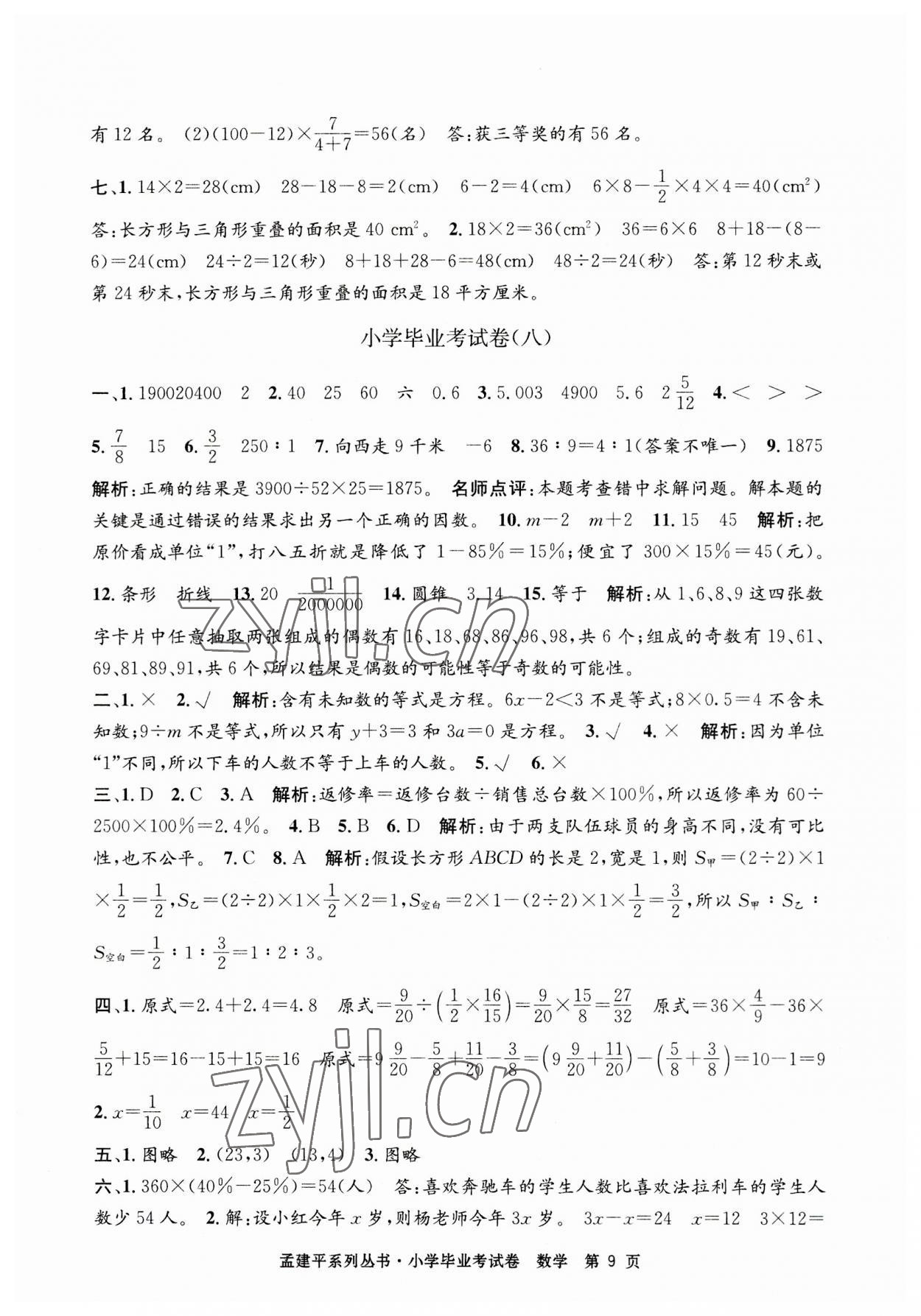注:目前有些书本章节名称可能整理的还不是很完善,但都是按照顺序排列的,请同学们按照顺序仔细查找。练习册 2023年孟建平小学毕业考试卷六年级数学 答案主要是用来给同学们做完题方便对答案用的,请勿直接抄袭。