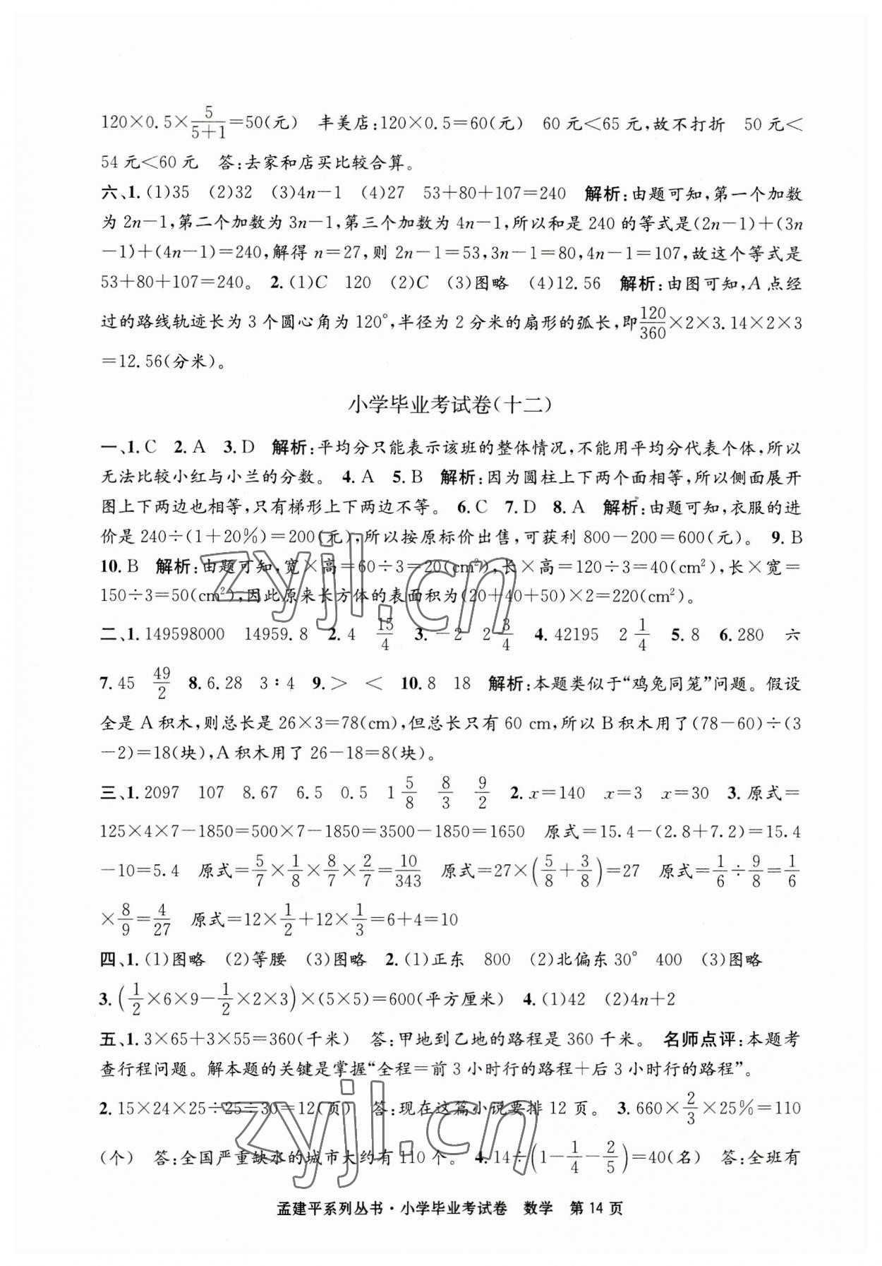 注:目前有些书本章节名称可能整理的还不是很完善,但都是按照顺序排列的,请同学们按照顺序仔细查找。练习册 2023年孟建平小学毕业考试卷六年级数学 答案主要是用来给同学们做完题方便对答案用的,请勿直接抄袭。