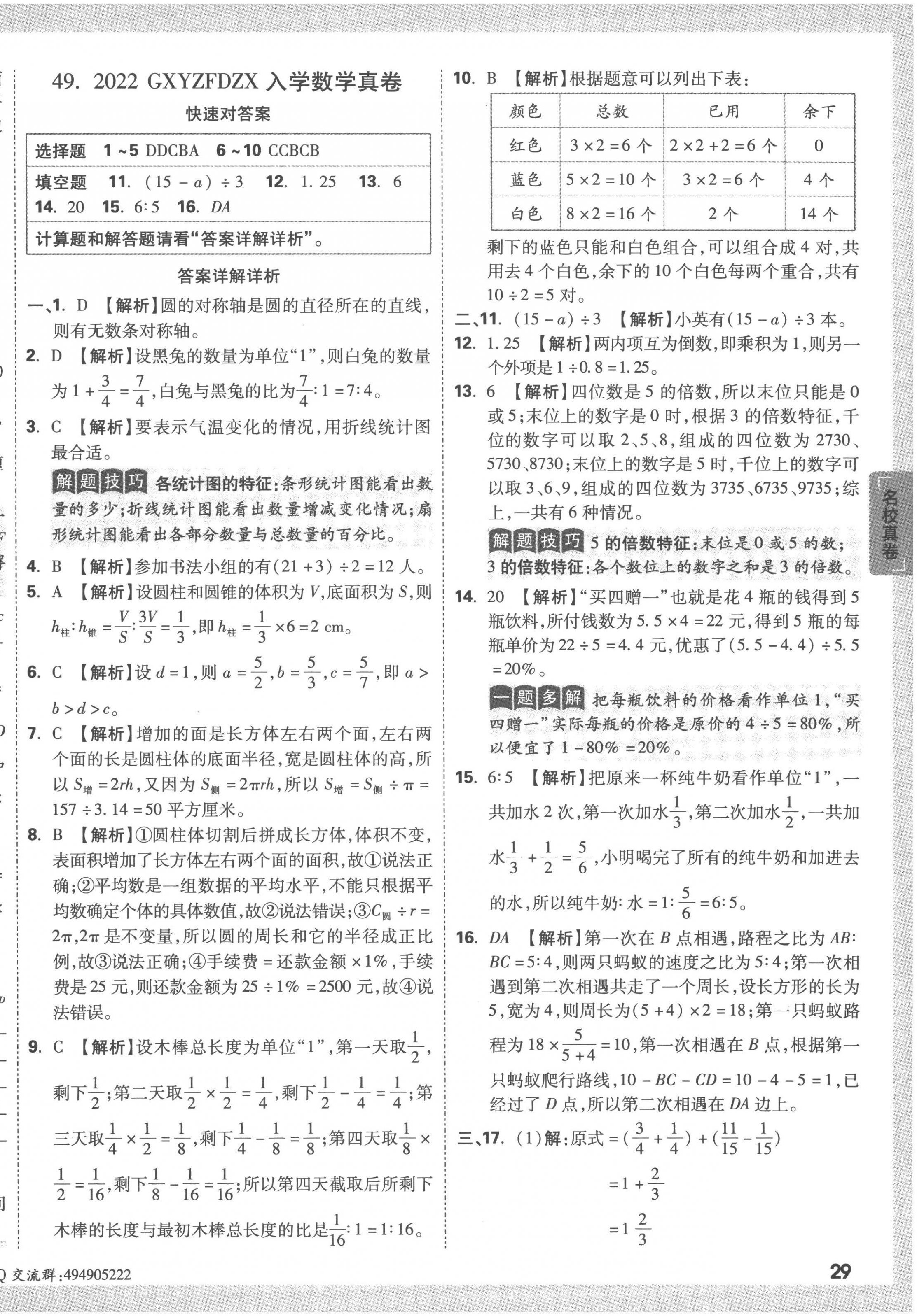 注:目前有些书本章节名称可能整理的还不是很完善,但都是按照顺序排列的,请同学们按照顺序仔细查找。练习册 2023年重点中学招生真题超详解六年级数学通用版 答案主要是用来给同学们做完题方便对答案用的,请勿直接抄袭。