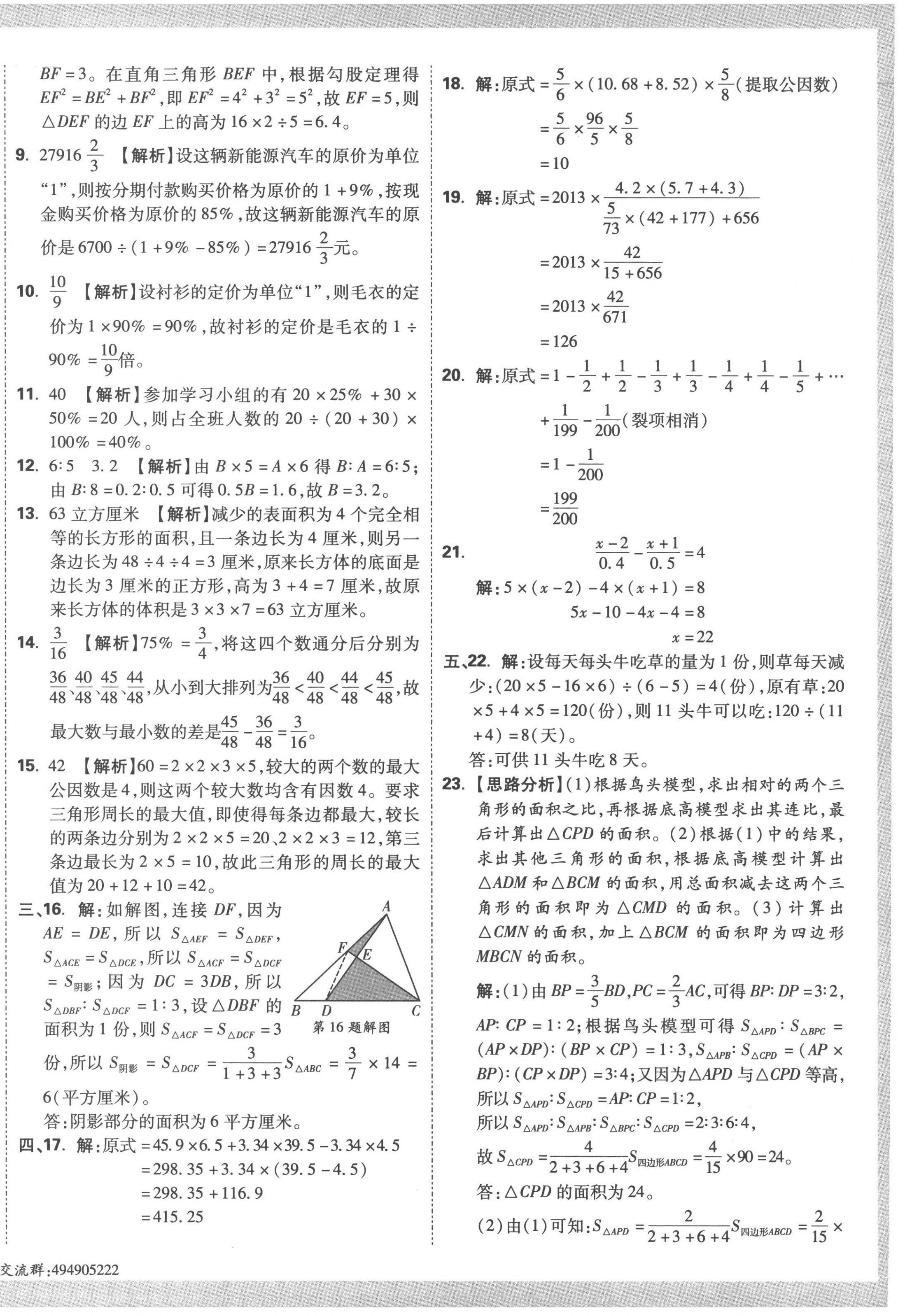 注:目前有些书本章节名称可能整理的还不是很完善,但都是按照顺序排列的,请同学们按照顺序仔细查找。练习册 2023年重点中学招生真题超详解六年级数学通用版 答案主要是用来给同学们做完题方便对答案用的,请勿直接抄袭。