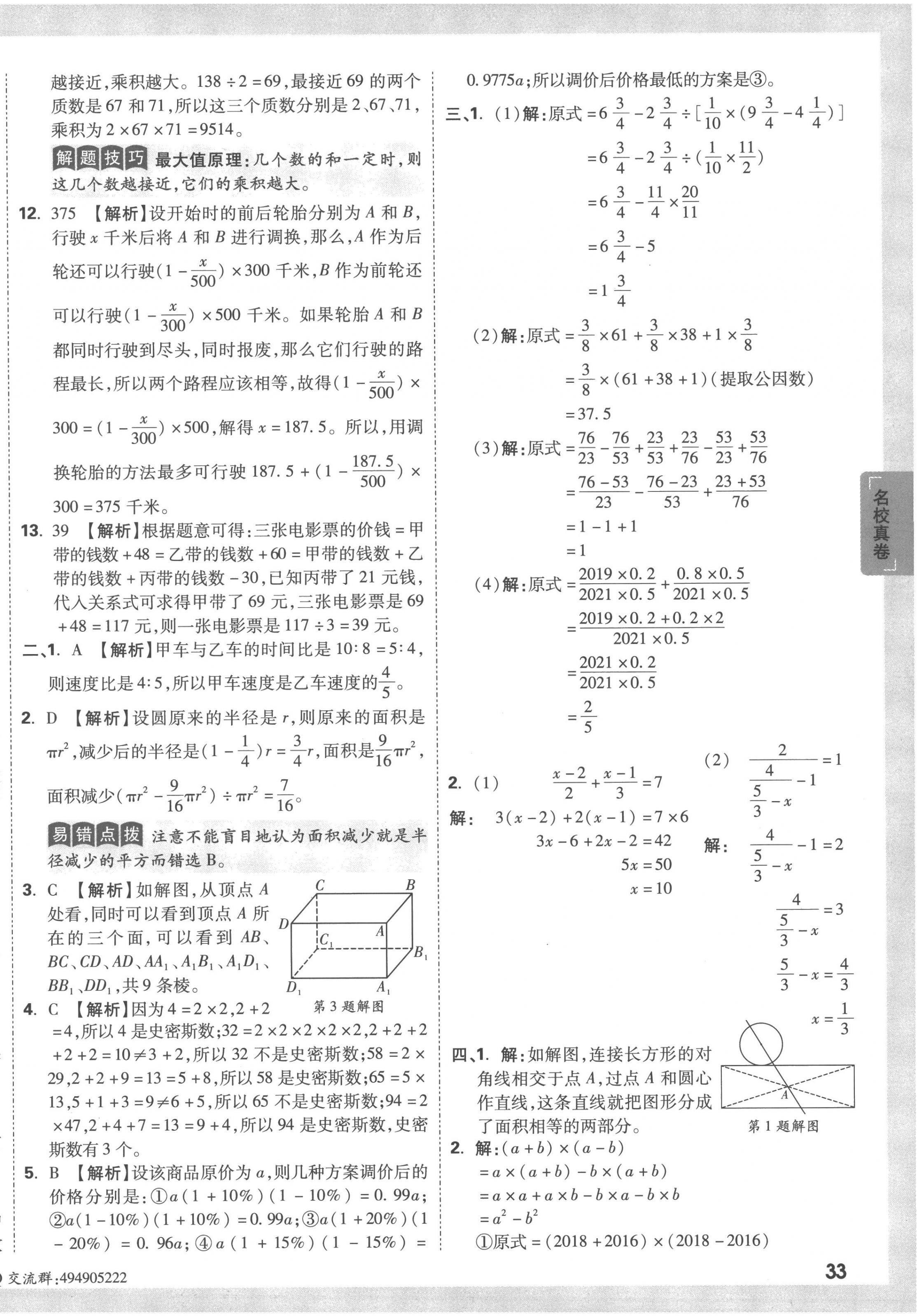 2023年重点中学招生真题超详解六年级数学通用版