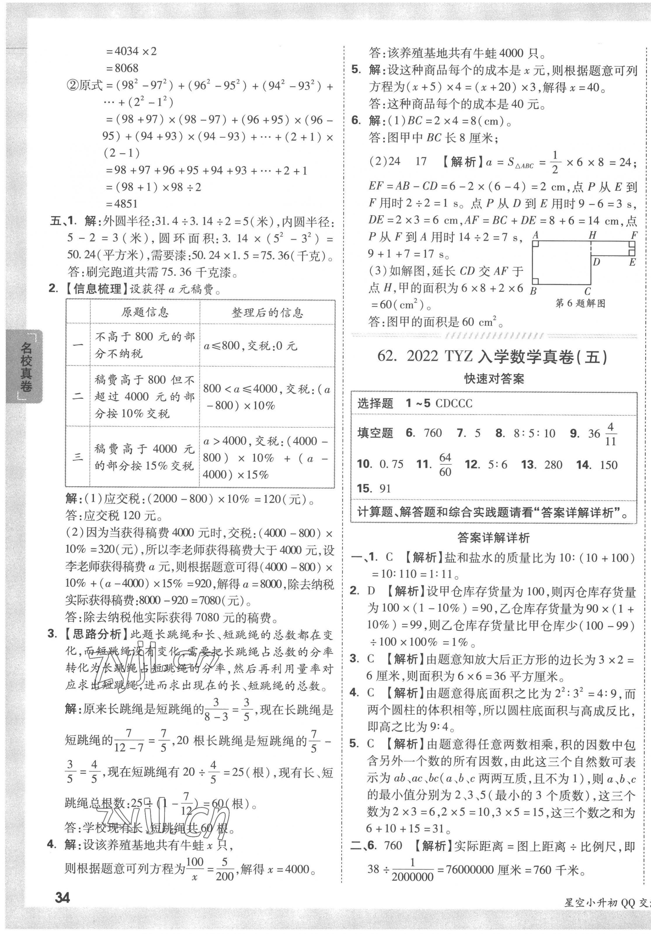 注:目前有些书本章节名称可能整理的还不是很完善,但都是按照顺序排列的,请同学们按照顺序仔细查找。练习册 2023年重点中学招生真题超详解六年级数学通用版 答案主要是用来给同学们做完题方便对答案用的,请勿直接抄袭。