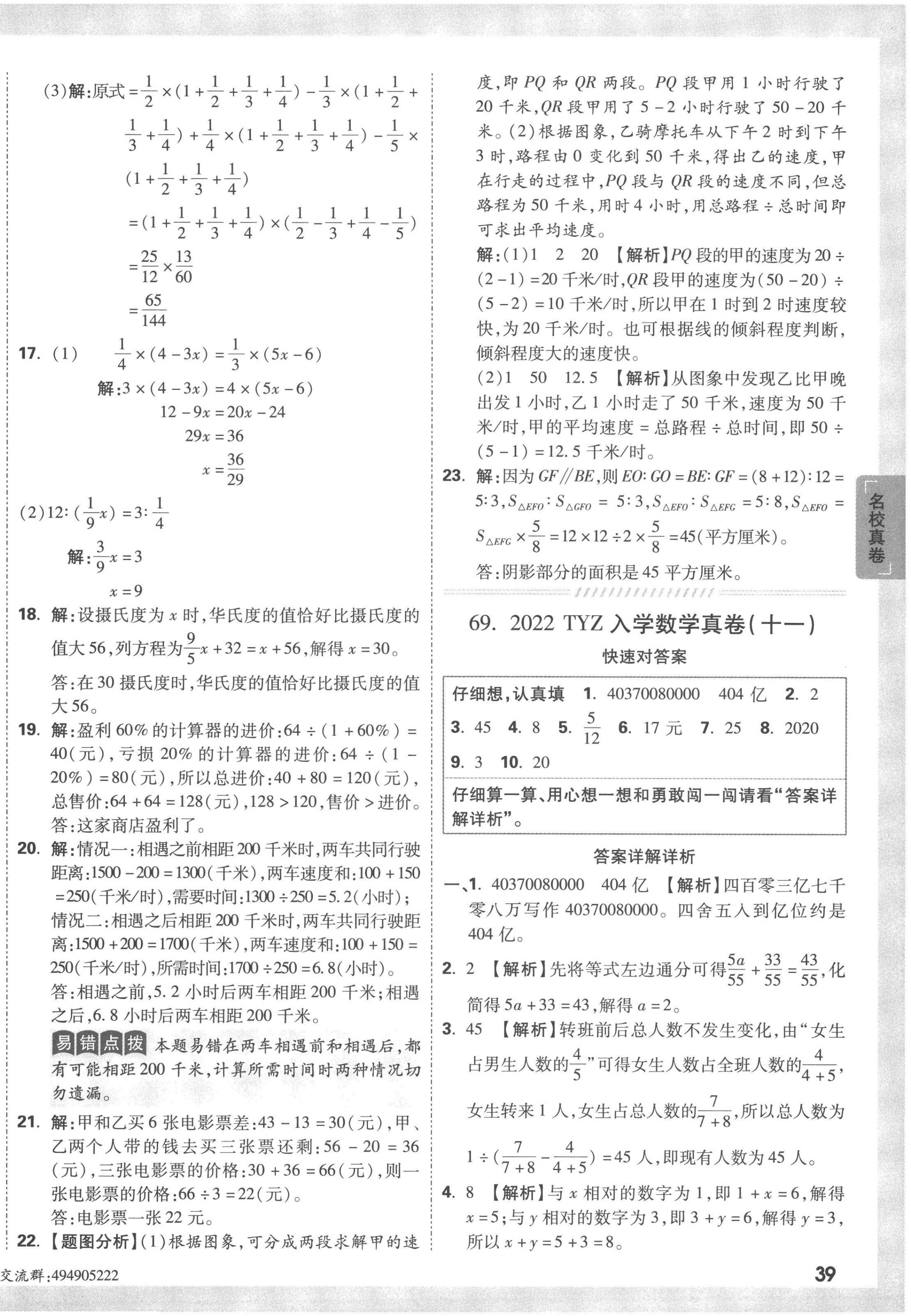 注:目前有些书本章节名称可能整理的还不是很完善,但都是按照顺序排列的,请同学们按照顺序仔细查找。练习册 2023年重点中学招生真题超详解六年级数学通用版 答案主要是用来给同学们做完题方便对答案用的,请勿直接抄袭。