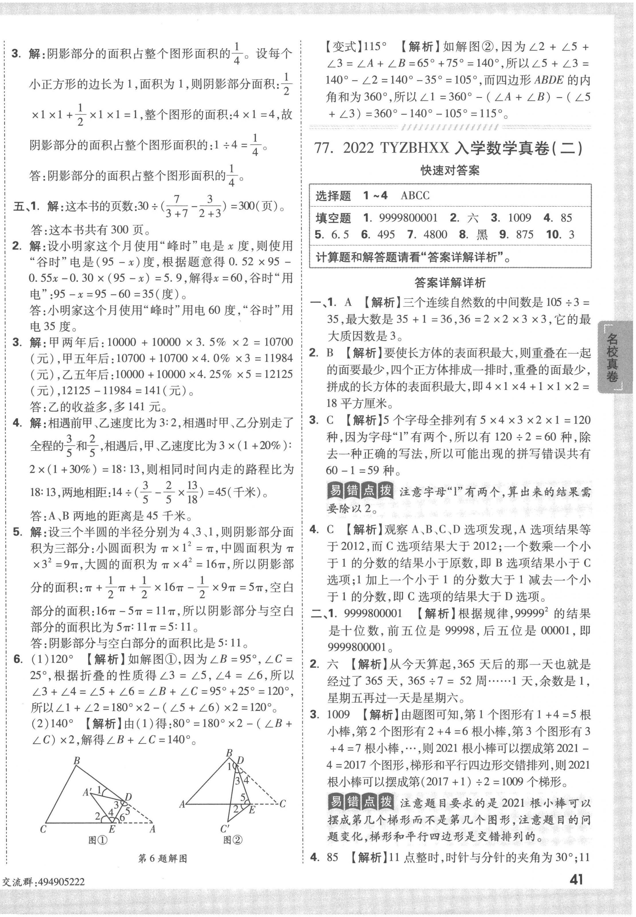 注:目前有些书本章节名称可能整理的还不是很完善,但都是按照顺序排列的,请同学们按照顺序仔细查找。练习册 2023年重点中学招生真题超详解六年级数学通用版 答案主要是用来给同学们做完题方便对答案用的,请勿直接抄袭。