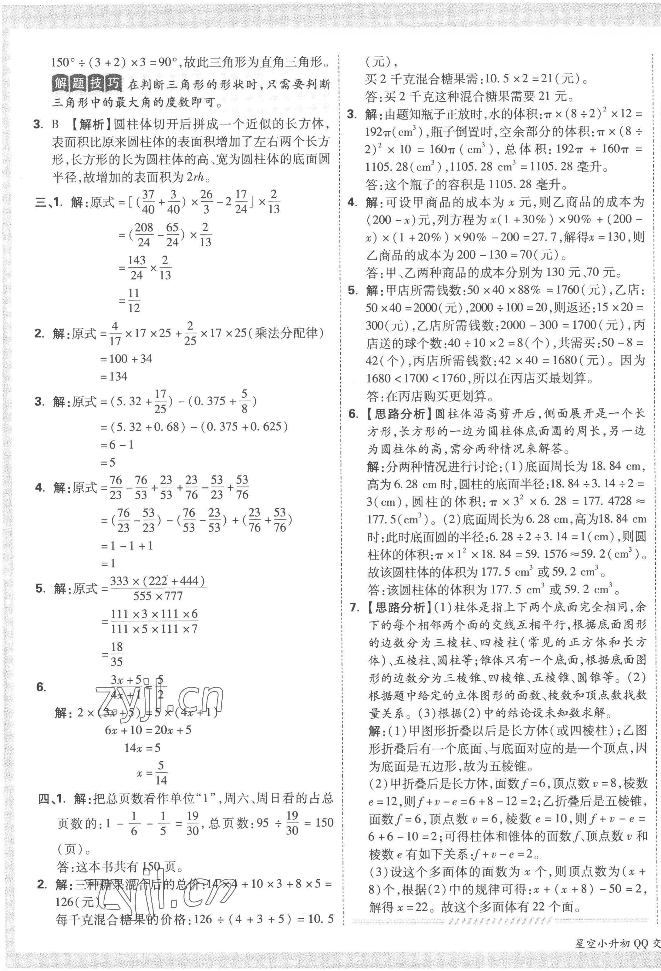 注:目前有些书本章节名称可能整理的还不是很完善,但都是按照顺序排列的,请同学们按照顺序仔细查找。练习册 2023年重点中学招生真题超详解六年级数学通用版 答案主要是用来给同学们做完题方便对答案用的,请勿直接抄袭。