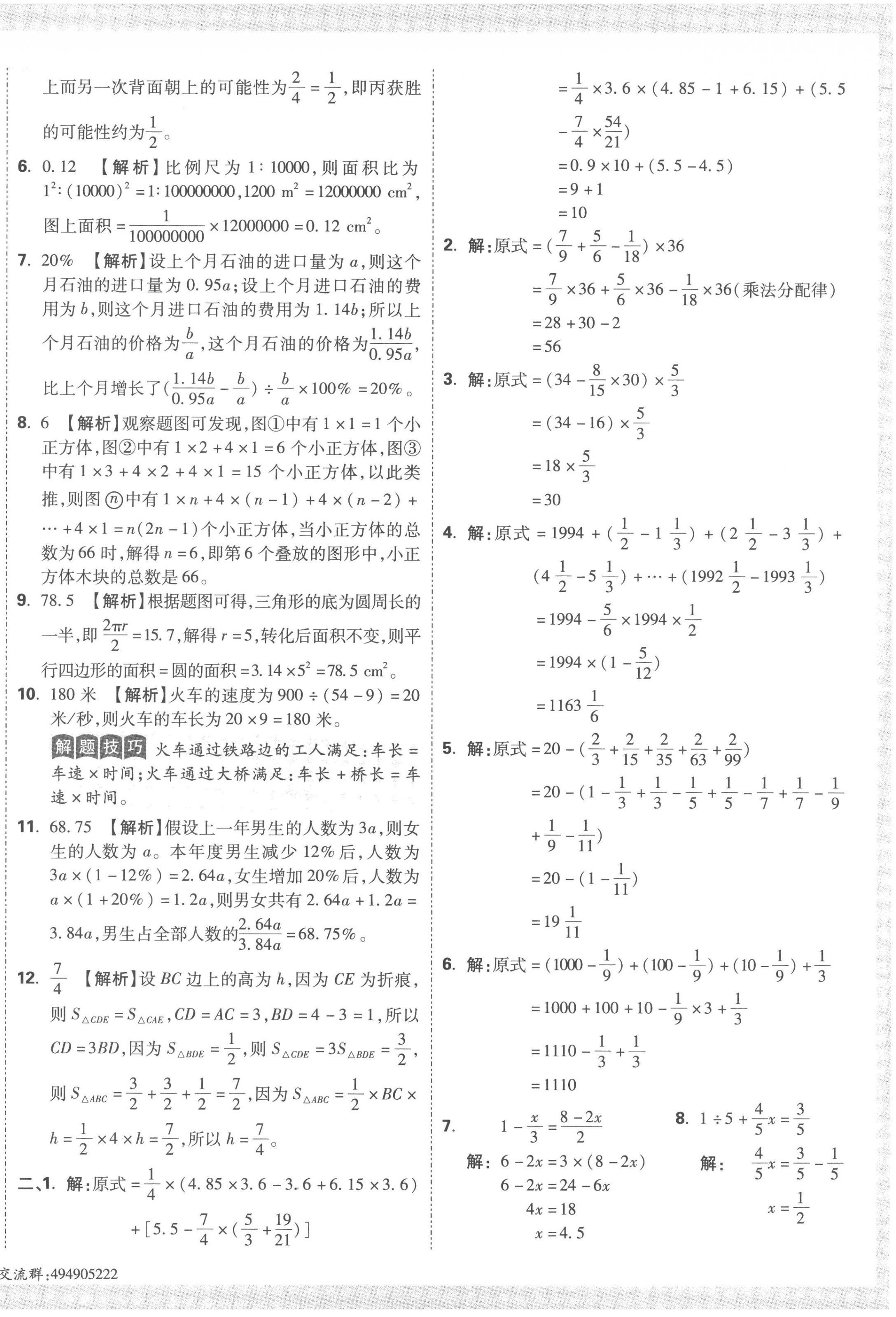 注:目前有些书本章节名称可能整理的还不是很完善,但都是按照顺序排列的,请同学们按照顺序仔细查找。练习册 2023年重点中学招生真题超详解六年级数学通用版 答案主要是用来给同学们做完题方便对答案用的,请勿直接抄袭。