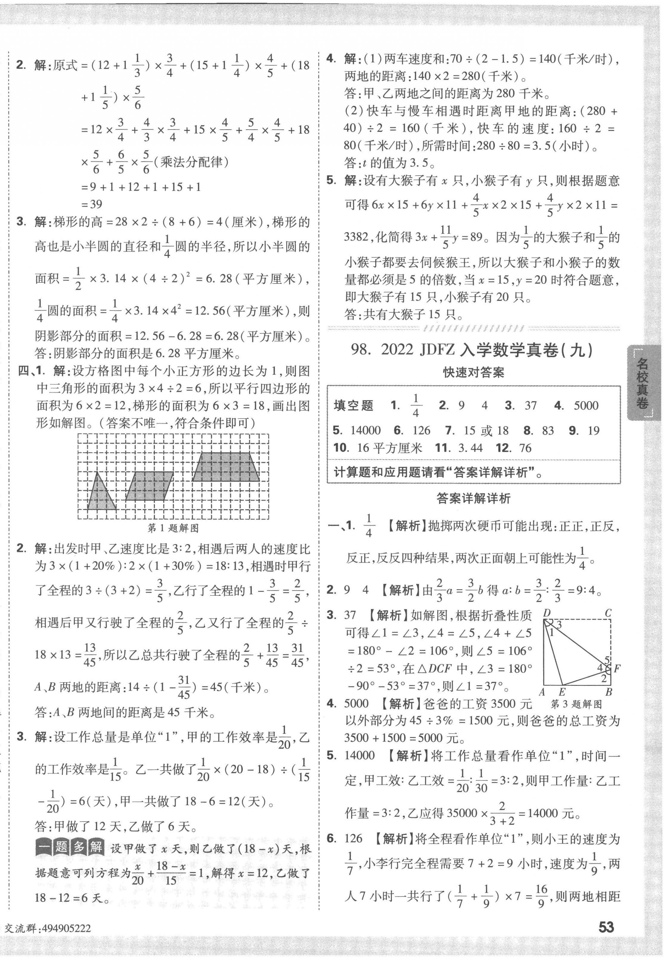 注:目前有些书本章节名称可能整理的还不是很完善,但都是按照顺序排列的,请同学们按照顺序仔细查找。练习册 2023年重点中学招生真题超详解六年级数学通用版 答案主要是用来给同学们做完题方便对答案用的,请勿直接抄袭。