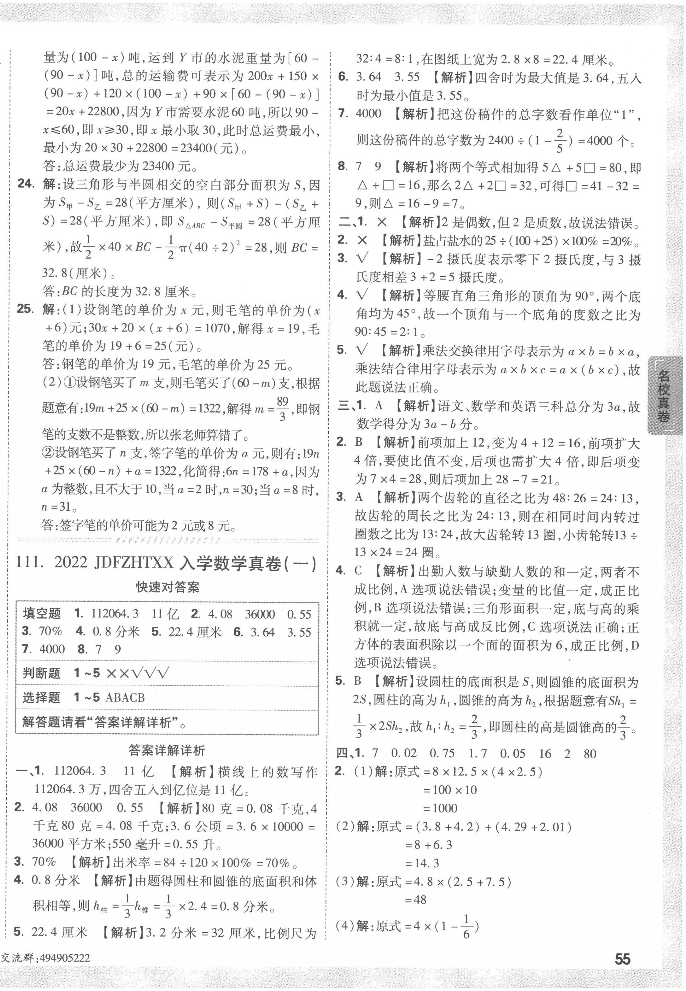 注:目前有些书本章节名称可能整理的还不是很完善,但都是按照顺序排列的,请同学们按照顺序仔细查找。练习册 2023年重点中学招生真题超详解六年级数学通用版 答案主要是用来给同学们做完题方便对答案用的,请勿直接抄袭。
