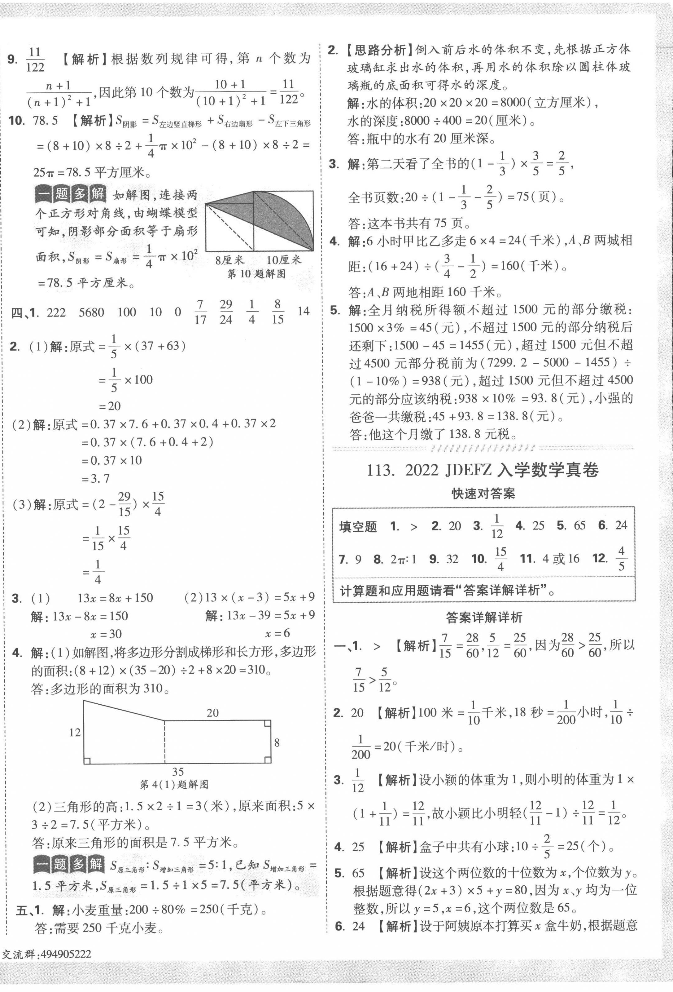 注:目前有些书本章节名称可能整理的还不是很完善,但都是按照顺序排列的,请同学们按照顺序仔细查找。练习册 2023年重点中学招生真题超详解六年级数学通用版 答案主要是用来给同学们做完题方便对答案用的,请勿直接抄袭。