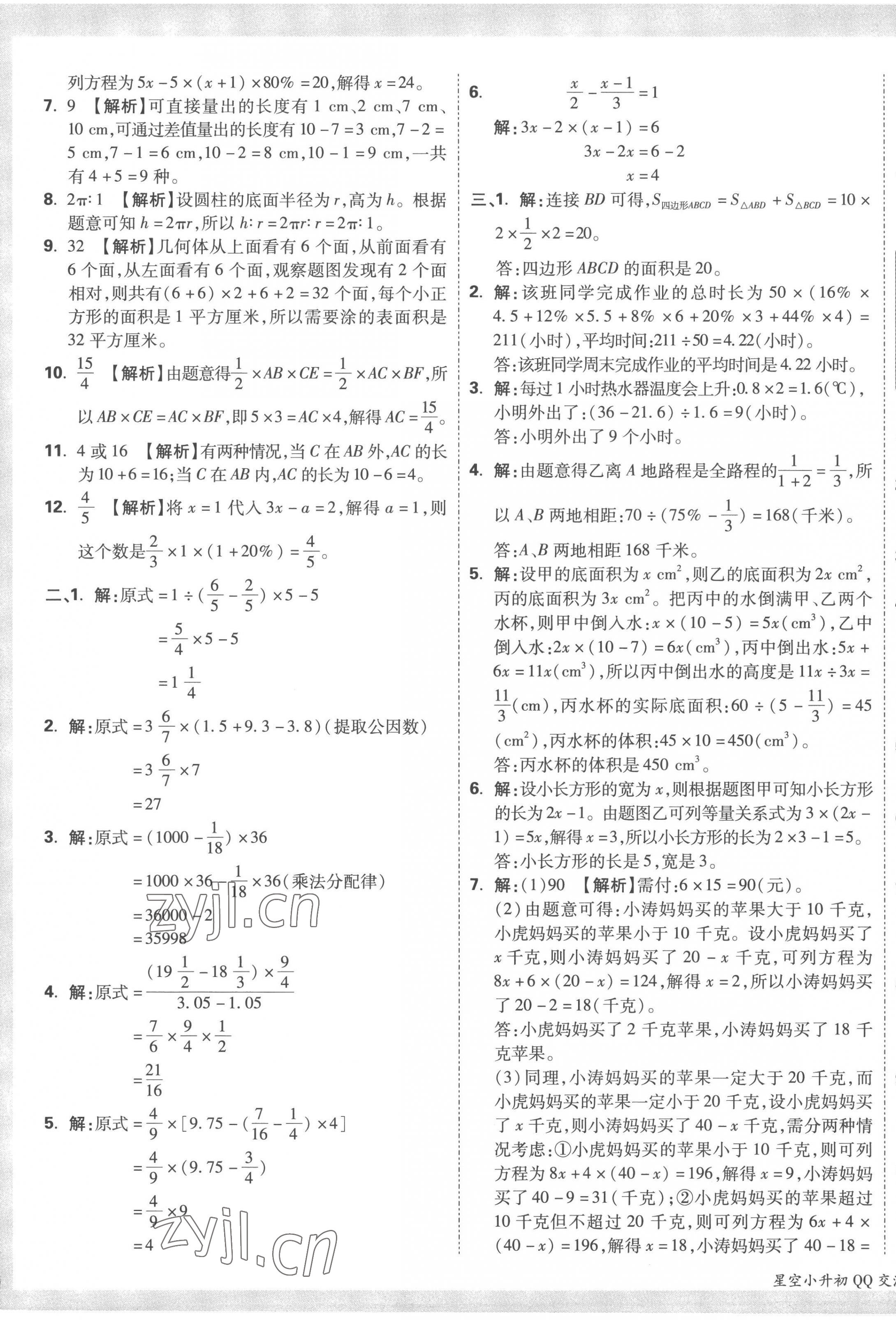 注:目前有些书本章节名称可能整理的还不是很完善,但都是按照顺序排列的,请同学们按照顺序仔细查找。练习册 2023年重点中学招生真题超详解六年级数学通用版 答案主要是用来给同学们做完题方便对答案用的,请勿直接抄袭。