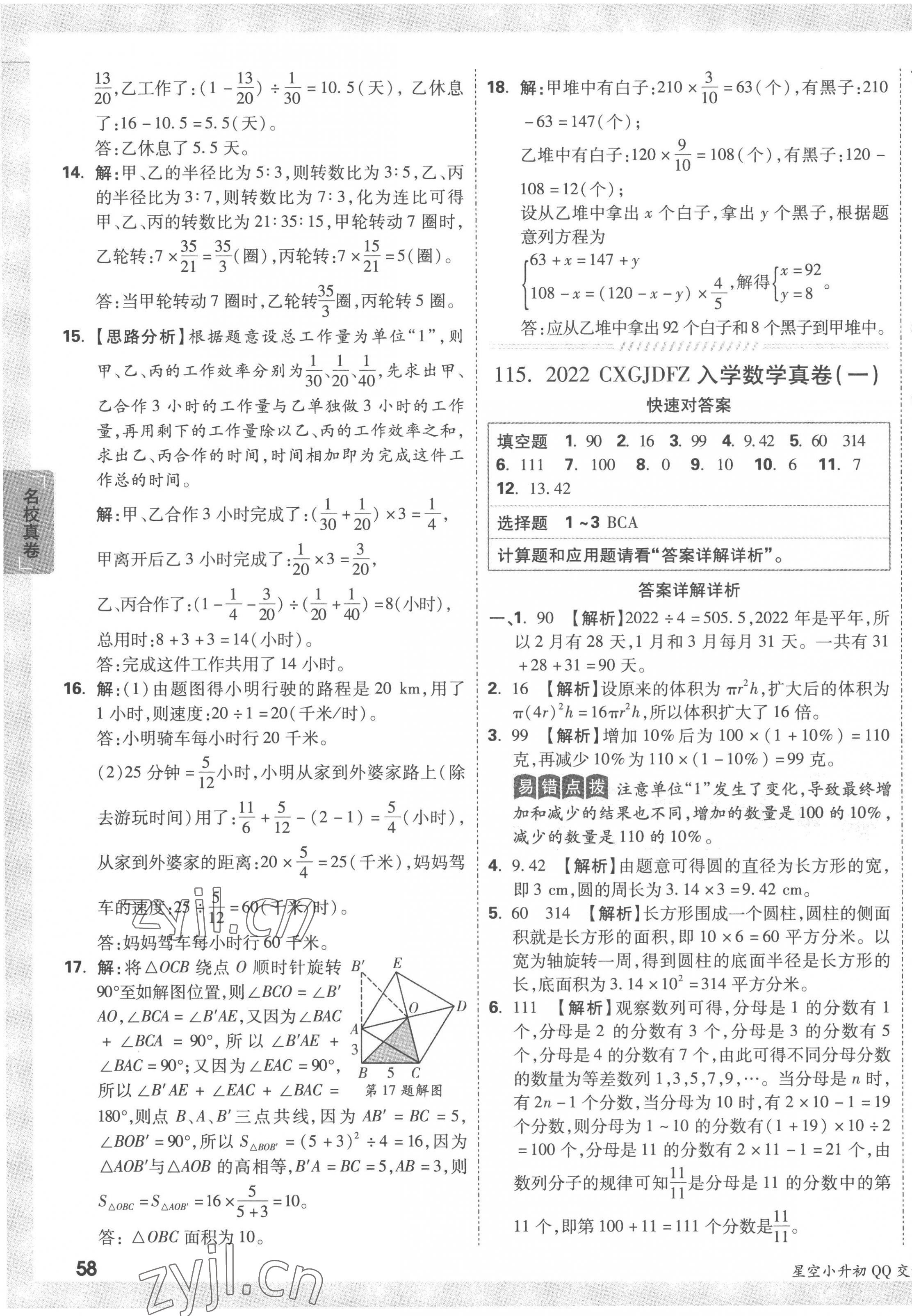 注:目前有些书本章节名称可能整理的还不是很完善,但都是按照顺序排列的,请同学们按照顺序仔细查找。练习册 2023年重点中学招生真题超详解六年级数学通用版 答案主要是用来给同学们做完题方便对答案用的,请勿直接抄袭。