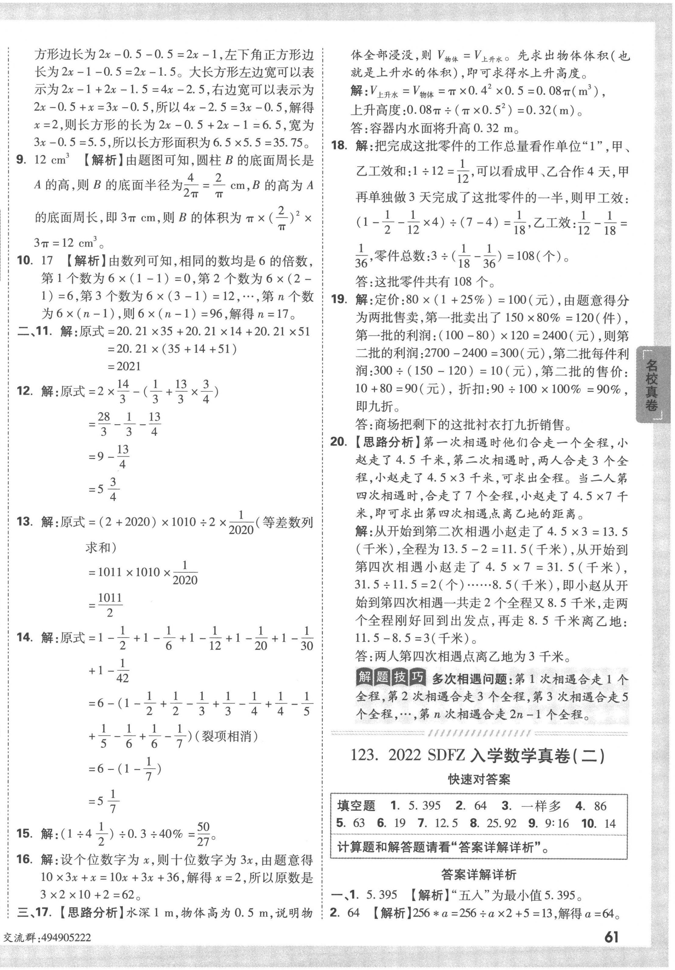 注:目前有些书本章节名称可能整理的还不是很完善,但都是按照顺序排列的,请同学们按照顺序仔细查找。练习册 2023年重点中学招生真题超详解六年级数学通用版 答案主要是用来给同学们做完题方便对答案用的,请勿直接抄袭。