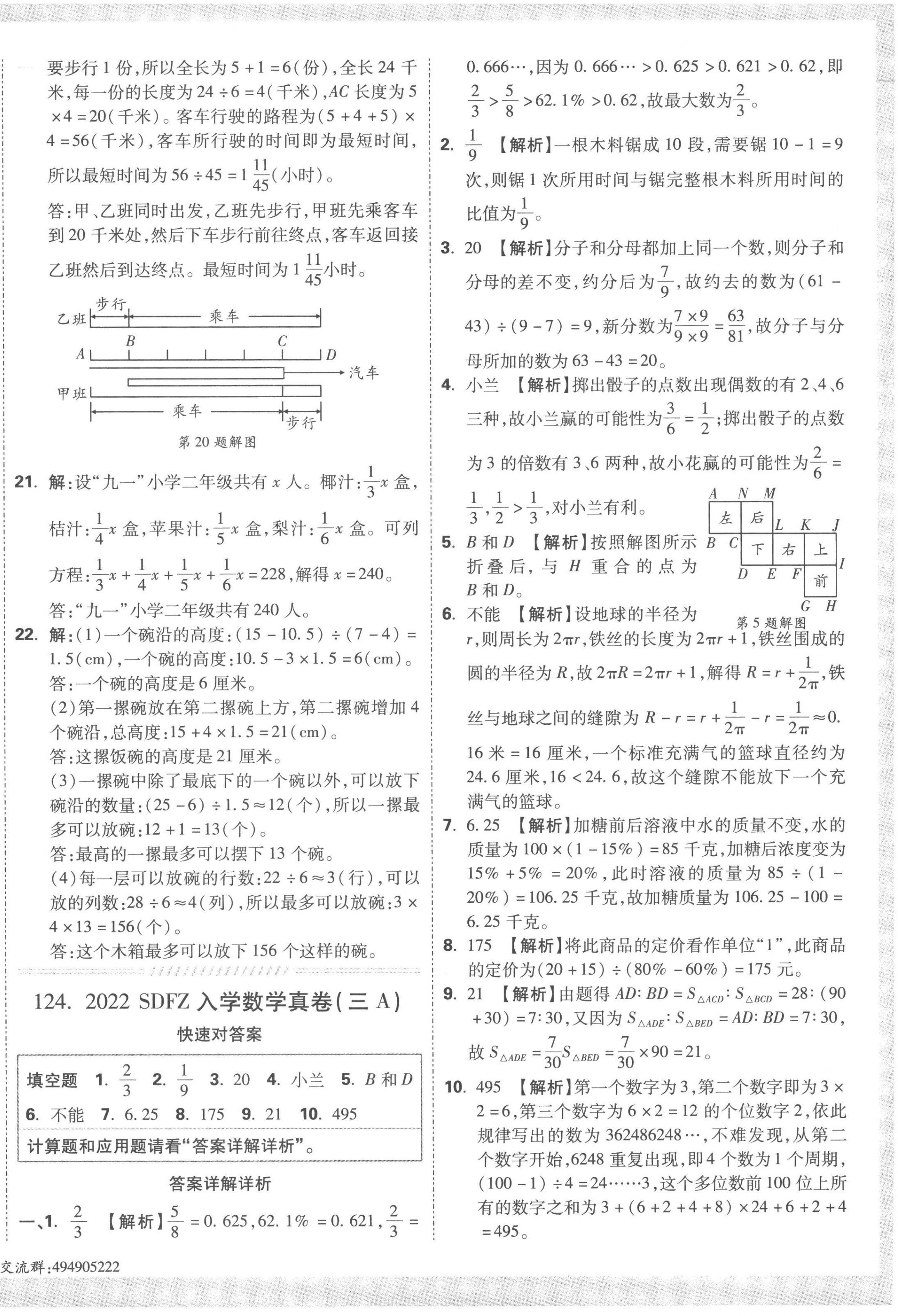 注:目前有些书本章节名称可能整理的还不是很完善,但都是按照顺序排列的,请同学们按照顺序仔细查找。练习册 2023年重点中学招生真题超详解六年级数学通用版 答案主要是用来给同学们做完题方便对答案用的,请勿直接抄袭。