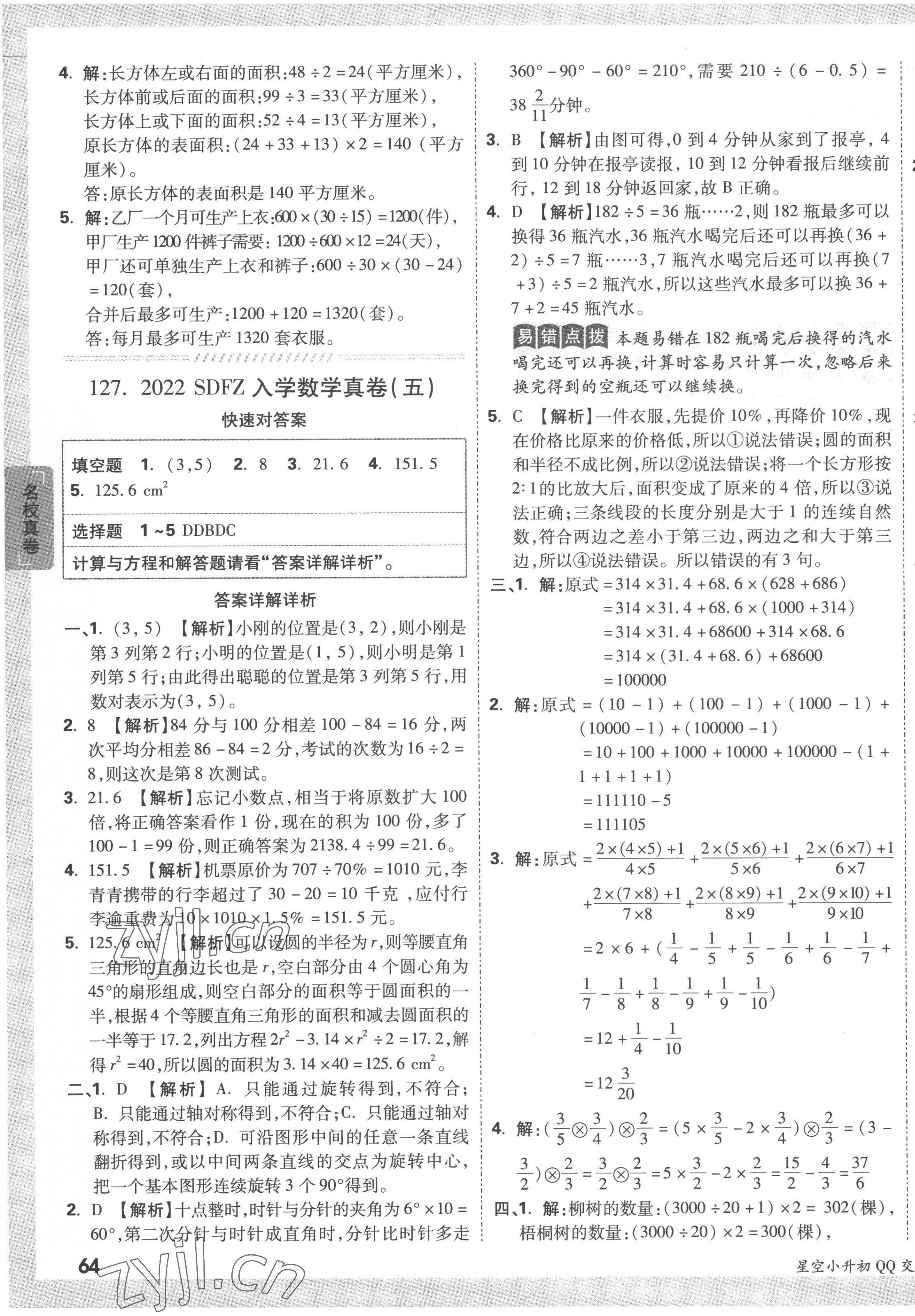 注:目前有些书本章节名称可能整理的还不是很完善,但都是按照顺序排列的,请同学们按照顺序仔细查找。练习册 2023年重点中学招生真题超详解六年级数学通用版 答案主要是用来给同学们做完题方便对答案用的,请勿直接抄袭。