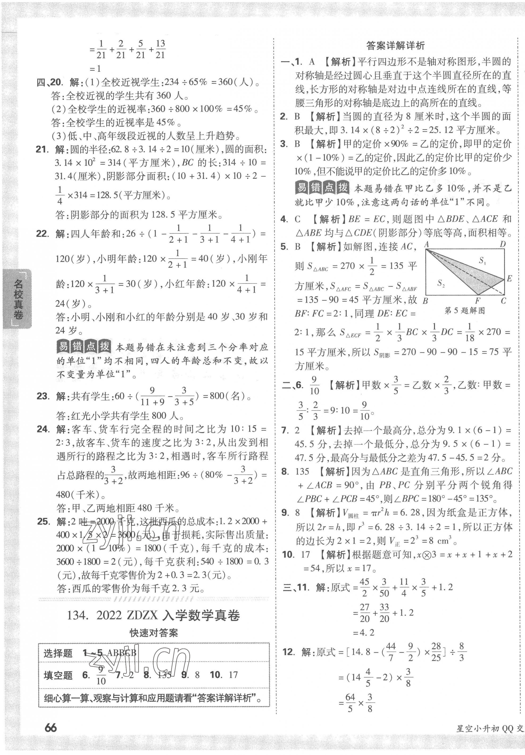注:目前有些书本章节名称可能整理的还不是很完善,但都是按照顺序排列的,请同学们按照顺序仔细查找。练习册 2023年重点中学招生真题超详解六年级数学通用版 答案主要是用来给同学们做完题方便对答案用的,请勿直接抄袭。