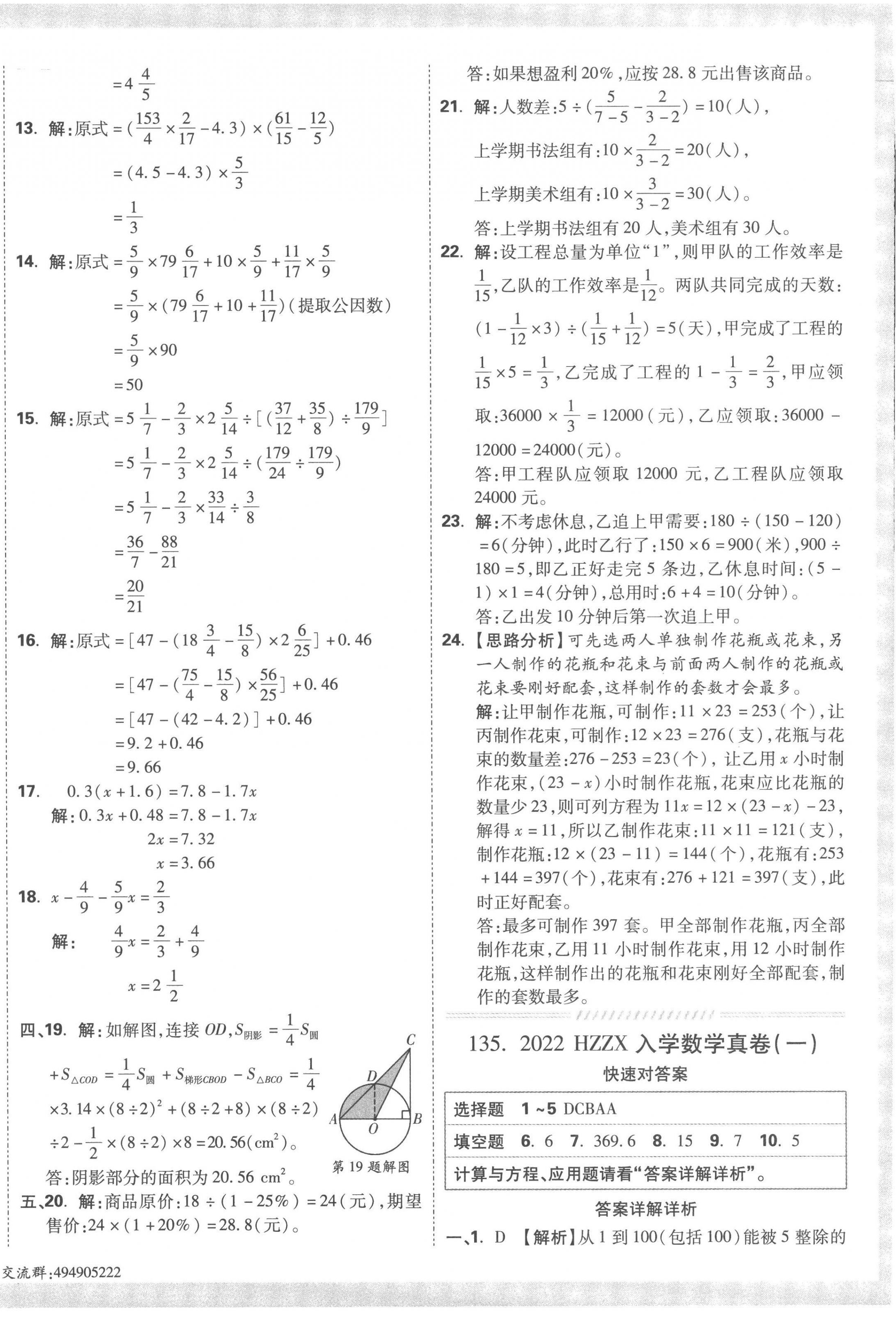 注:目前有些书本章节名称可能整理的还不是很完善,但都是按照顺序排列的,请同学们按照顺序仔细查找。练习册 2023年重点中学招生真题超详解六年级数学通用版 答案主要是用来给同学们做完题方便对答案用的,请勿直接抄袭。