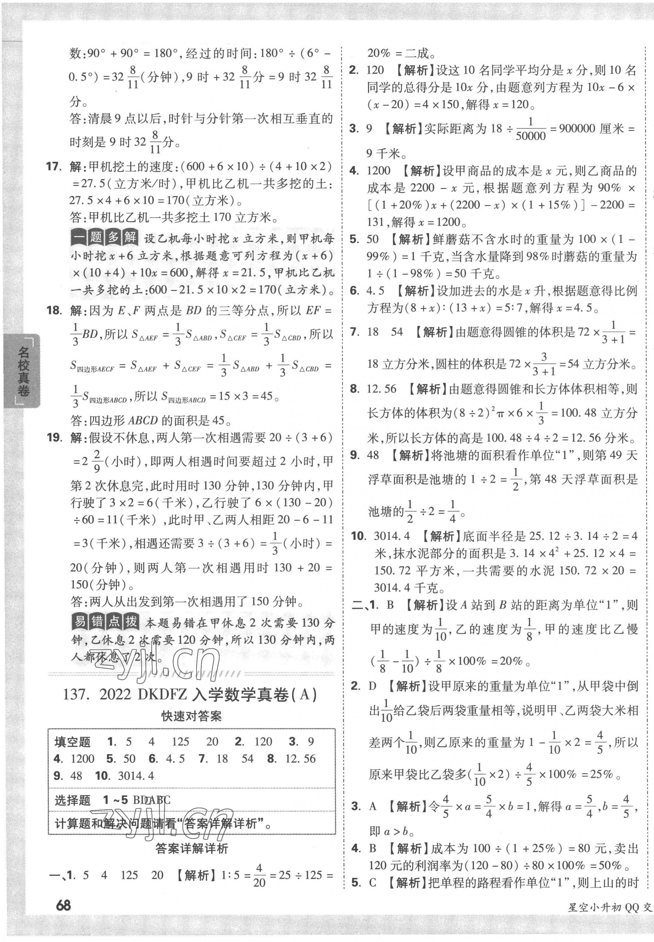 注:目前有些书本章节名称可能整理的还不是很完善,但都是按照顺序排列的,请同学们按照顺序仔细查找。练习册 2023年重点中学招生真题超详解六年级数学通用版 答案主要是用来给同学们做完题方便对答案用的,请勿直接抄袭。