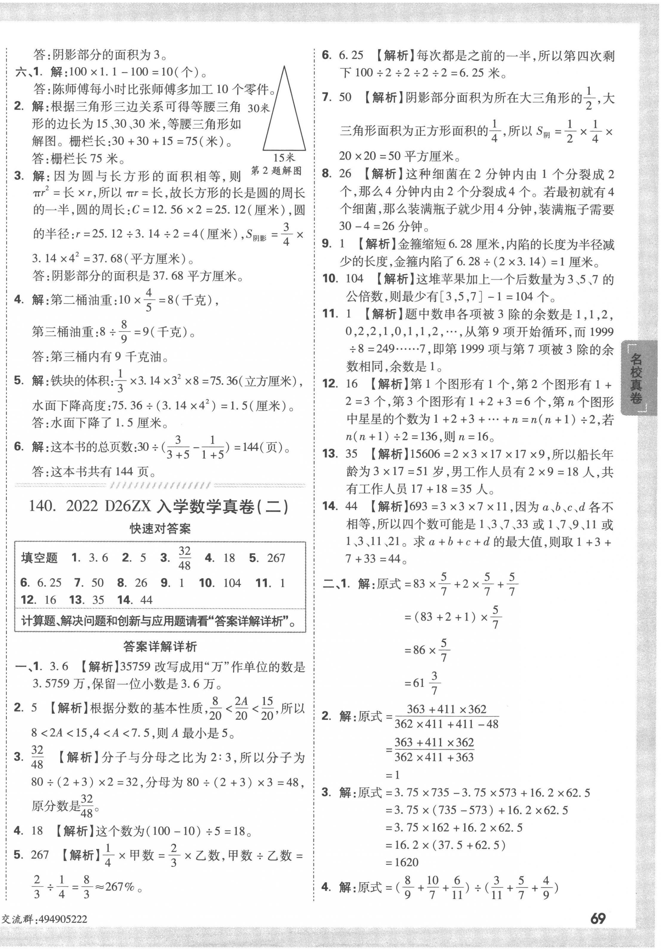 注:目前有些书本章节名称可能整理的还不是很完善,但都是按照顺序排列的,请同学们按照顺序仔细查找。练习册 2023年重点中学招生真题超详解六年级数学通用版 答案主要是用来给同学们做完题方便对答案用的,请勿直接抄袭。