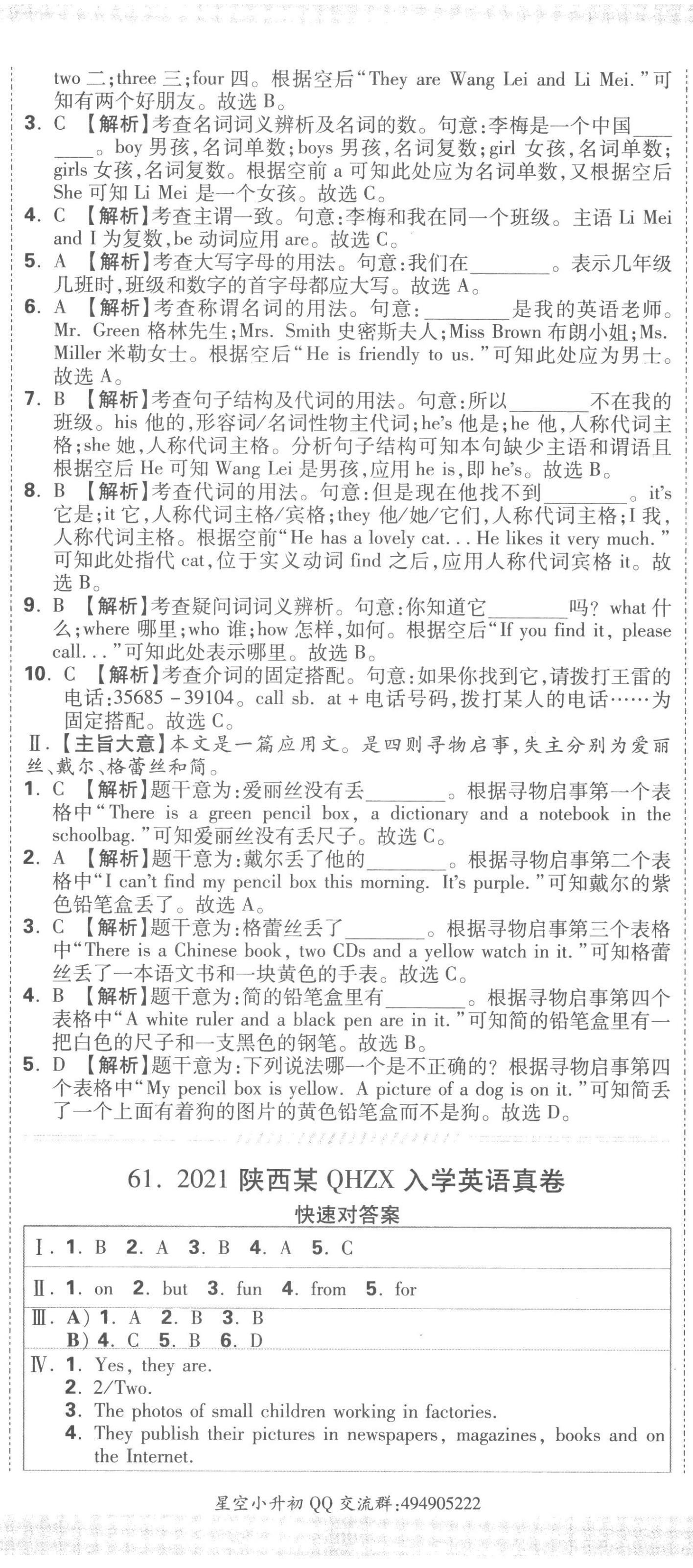 注:目前有些书本章节名称可能整理的还不是很完善,但都是按照顺序排列的,请同学们按照顺序仔细查找。练习册 2023年重点中学招生真题超详解六年级英语通用版 答案主要是用来给同学们做完题方便对答案用的,请勿直接抄袭。