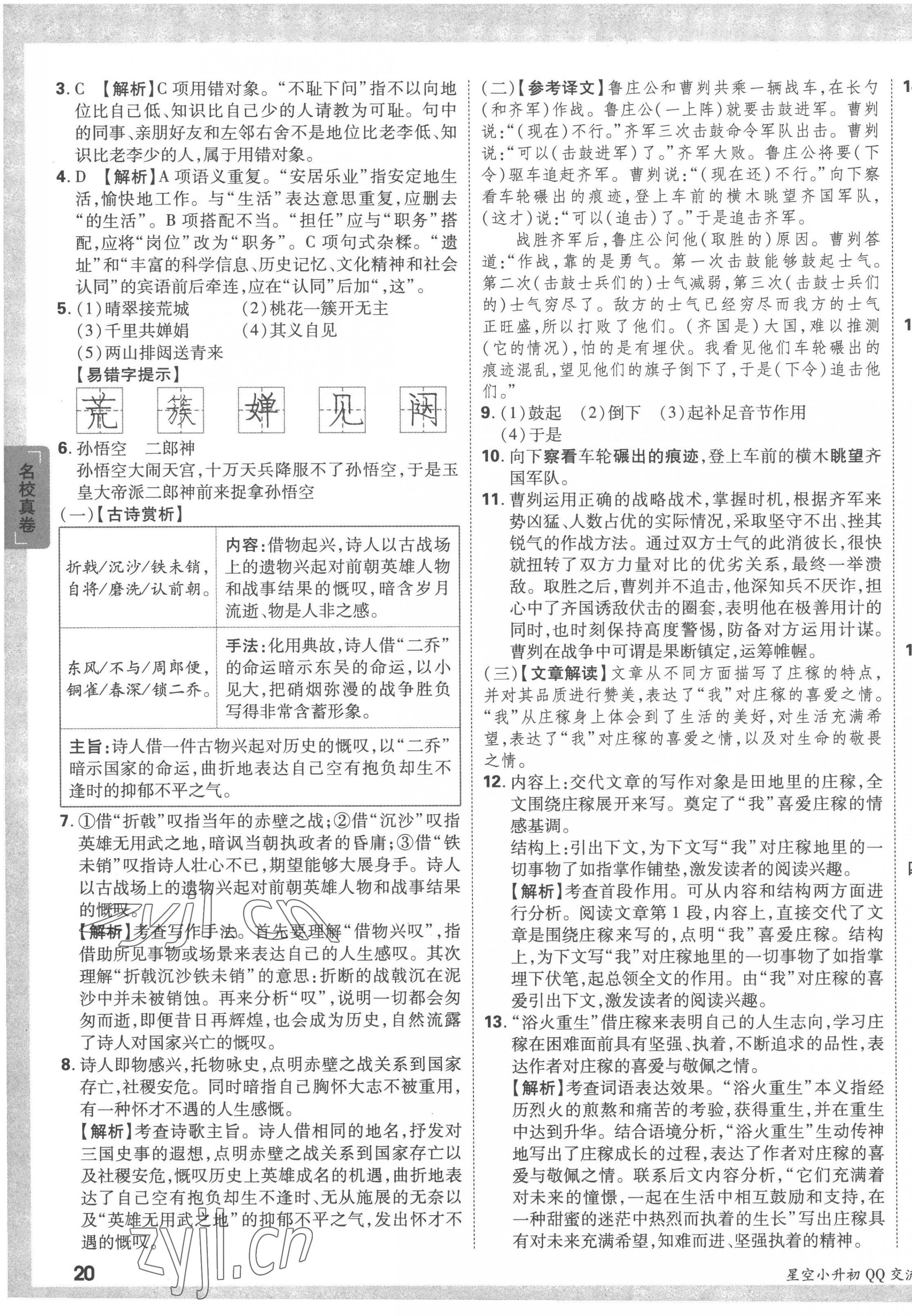 注:目前有些书本章节名称可能整理的还不是很完善,但都是按照顺序排列的,请同学们按照顺序仔细查找。练习册 2023年重点中学招生真题超详解六年级语文 答案主要是用来给同学们做完题方便对答案用的,请勿直接抄袭。