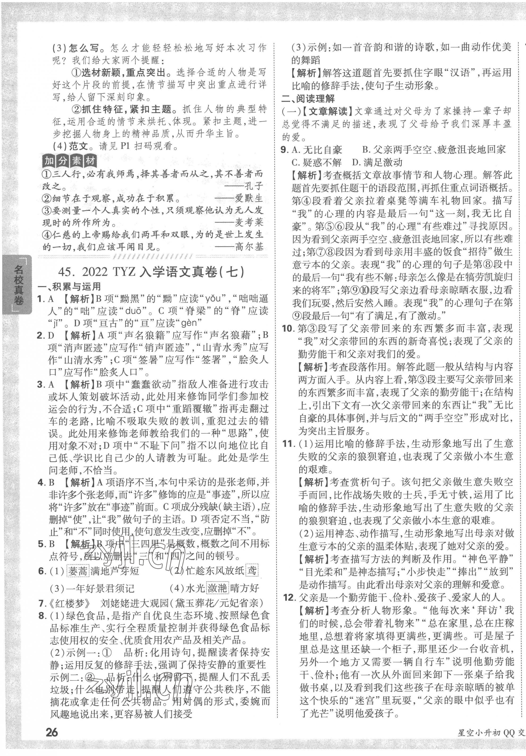 2023年重点中学招生真题超详解六年级语文