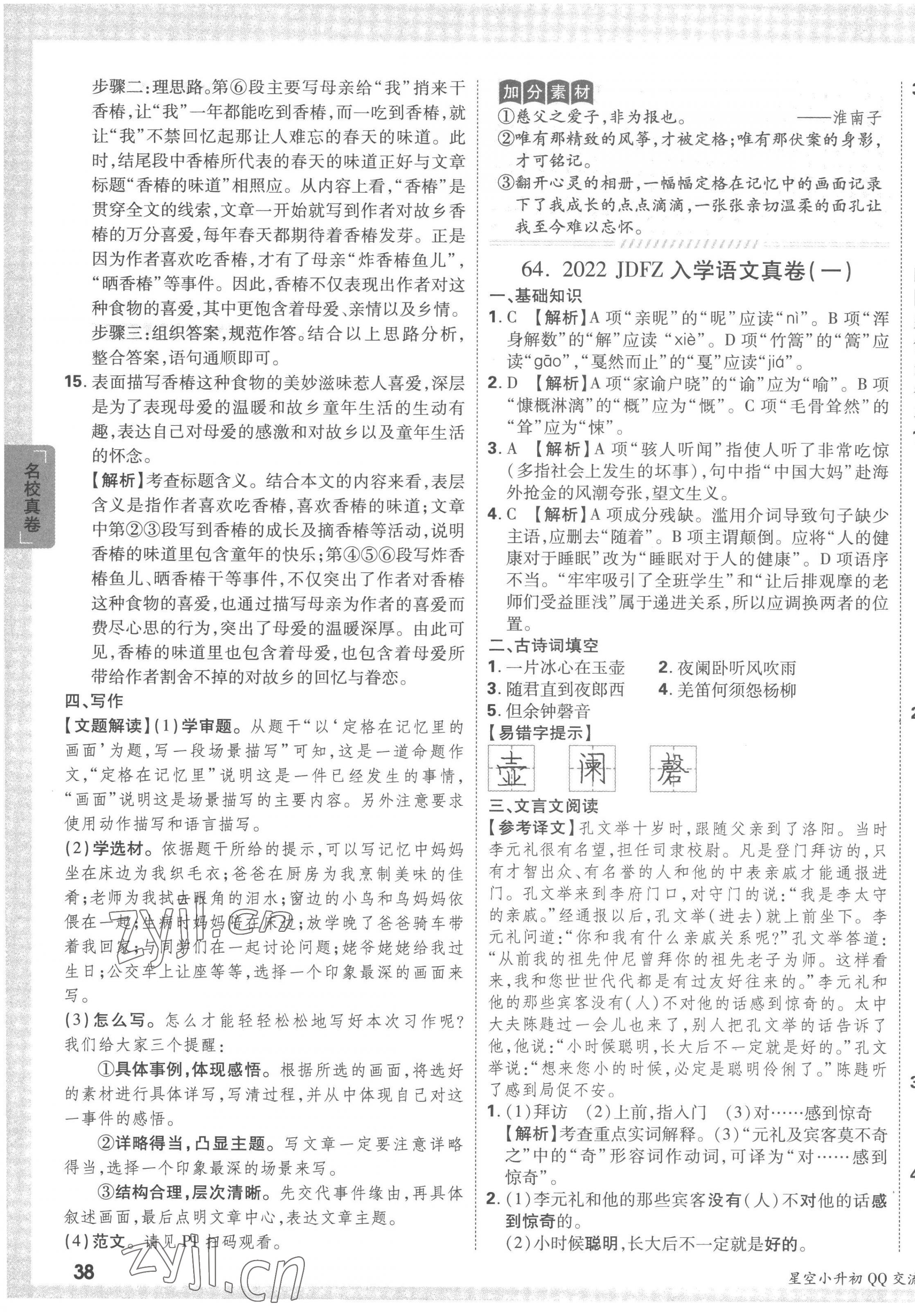 2023年重点中学招生真题超详解六年级语文